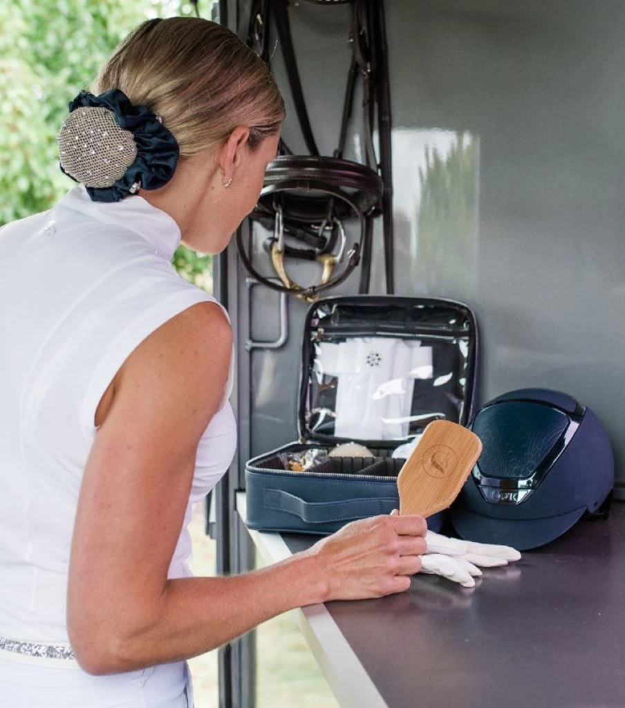 So many years of development has gone into this design, times we have been with you at events and either in midst of a polished look consultation or as a rider in the stables we have witnessed all your hair accessories are just either thrown into your helmet case or in a plastic bag that you found laying around. Stock in another place and of gosh where are my gloves you ask???