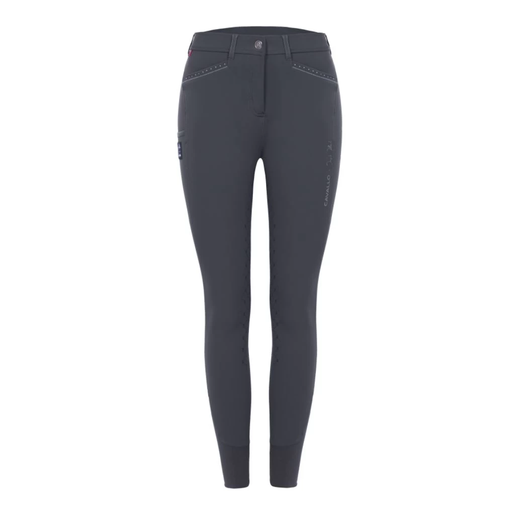 - Large mobile phone pocket on the right thigh with Ingrid Klimke & Cavallo logo.
