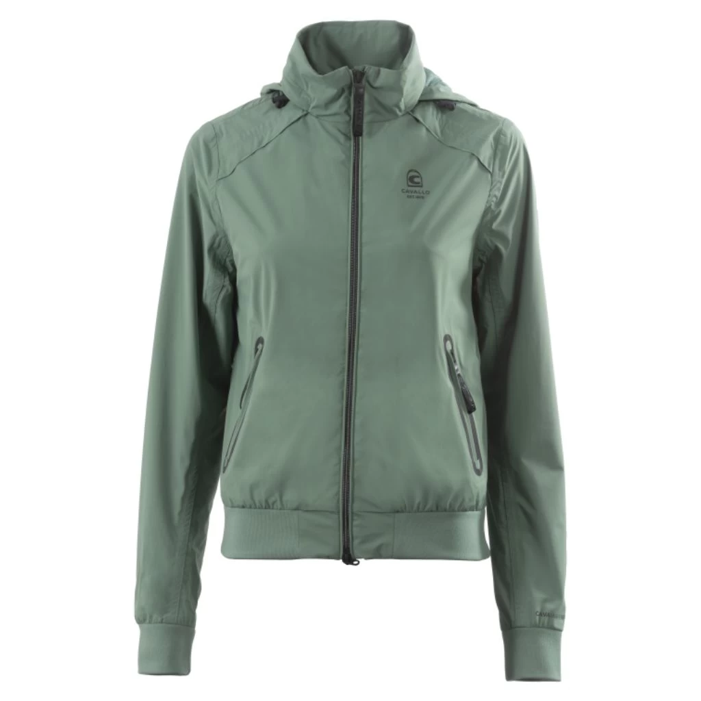 Waterproof! Cavallo Fee super light weight jacket offers you a great jacket for those who prefer a short raincoat. Ultra light weight perfect for warm rainy days or to layer up underneath when cold. A stylish green colour for those branching out from the usual blacks and navy! A superior ventilation system at the back, removable hood and practical with many pockets inside and out and elastic cuffs.