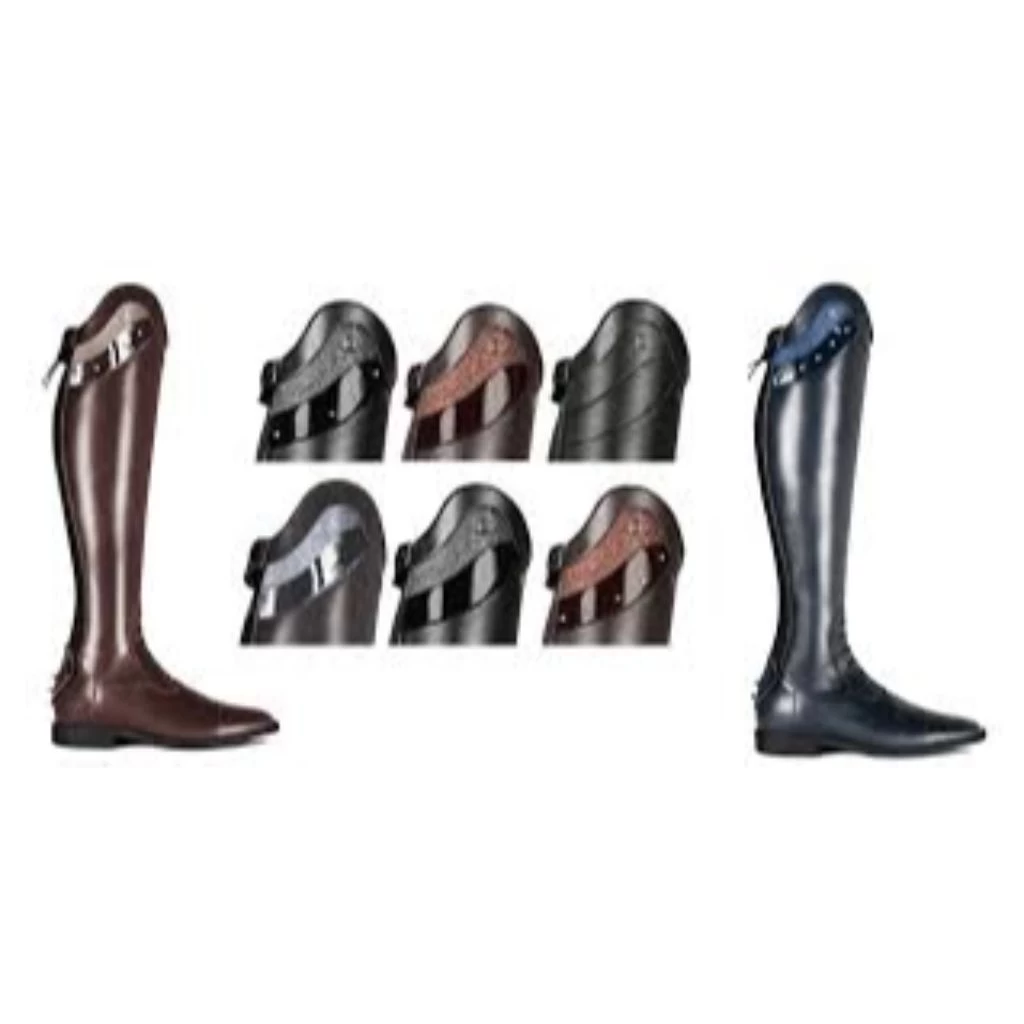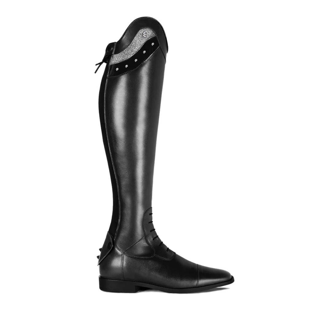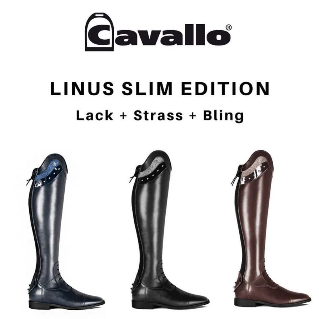 The Linus Slim is an allround riding boot with a fitted ankle (suits people with slim ankle). With patent panel, sparkle panel and crystals at the top.