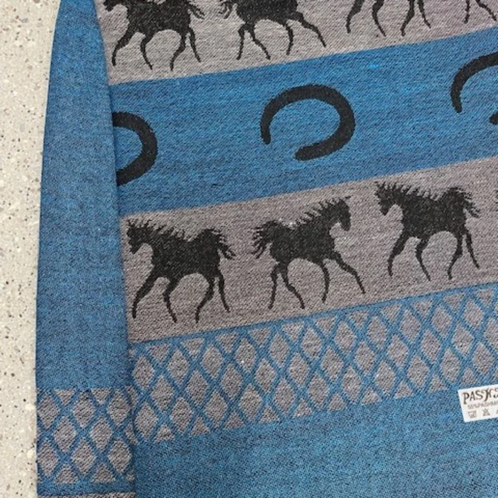 Ladies Pashmina and Silk horse themed scarf – Aqua 55% Pashmina – 45% Silk 36″ x 66″ (91cm x 168cm)