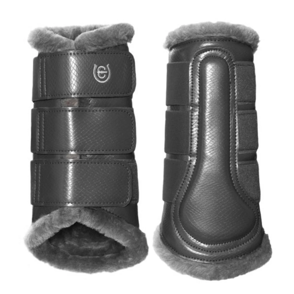 High quality brushing boots with all-round fit, designed in an elegant grey. Produced with shiny synthetic leather with croco imitation. Soft teddy on the inside against the horse’s leg. Elastic velcro closings with the stylish Equestrian Stockholm logo. Style it with other products from the same collection for a complete look.