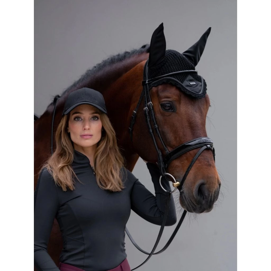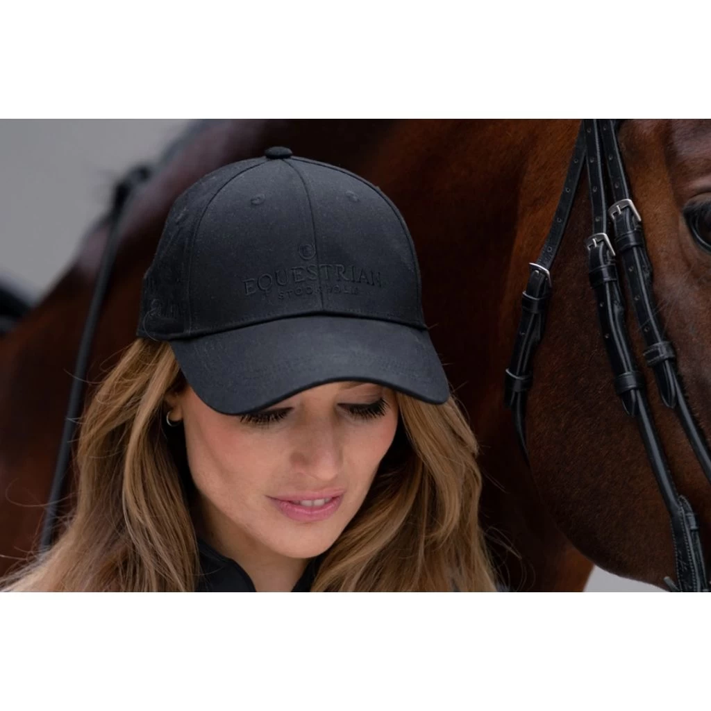 Our stylish power woman cap is made in cotton and designed in an elegant black color. Decorated with tone on tone Equestrian Stockholm Power woman logos both on the front and on the side. Wear it with our other products from the Total Eclipse collection for a complete look!