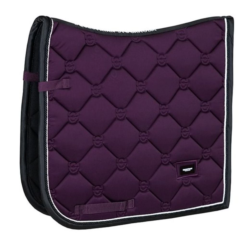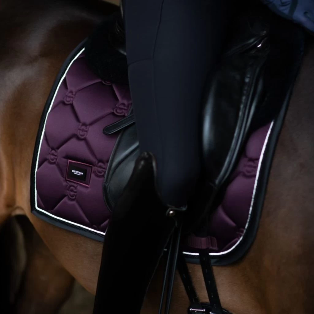 Elegant saddle pad in a dark purple colour with black and white details. Decorated with the Equestrian Stockholm badge in black. The material is treated with High IQ cool comfort which gives the saddle pad quick dry and moisture wicking abilities. This helps your horse stay dry and fresh longer. Style with other pieces from our Black Raven collection for a head-to-toe stylish look.
