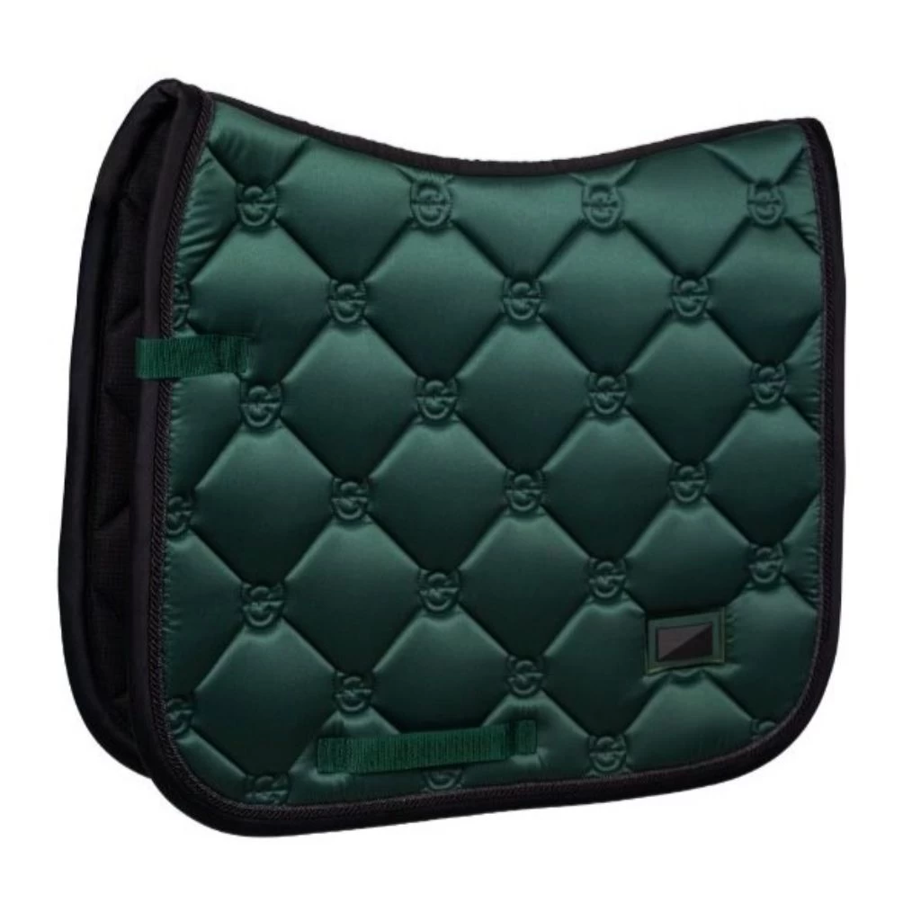 Elegant saddle pad in a cool dark green colour with black and chrome details. Decorated with the Equestrian Stockholm badge in black. The bamboo material is perfect all year round due to its thermal regulating effect – cooling in the Summer and warming in the Winter. It is also quick dry, moisture wicking, and anti-bacterial. Style with other pieces from the Sycamore Green collection for a head-to-toe stylish look.