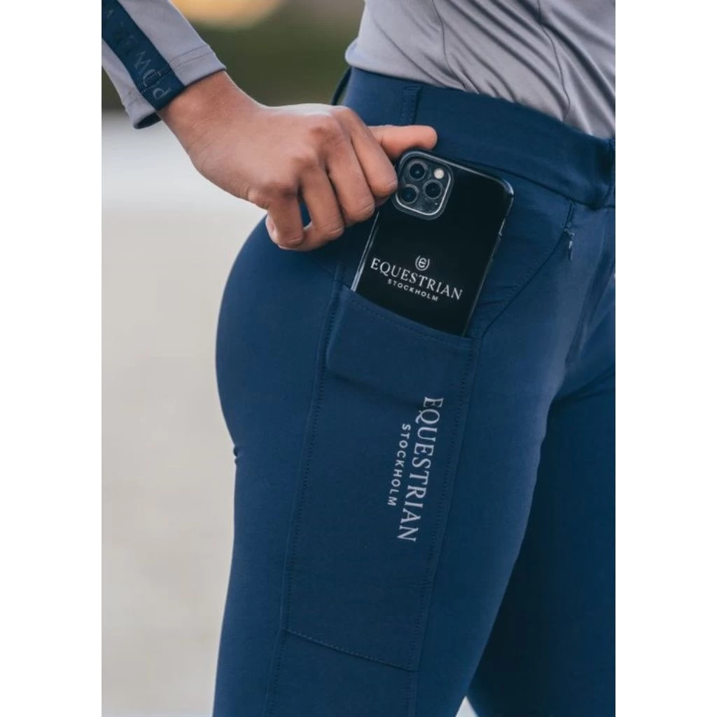 Our brand new riding breeches comes in 4-way stretch material and a wider size range. Exclusive riding breeches designed beautiful navy blue. Styled with Equestrian Stockholm’s logo. With knee grip, comfortable mobile pockets and super soft fabric, these will be your go-to-piece. Knee silicon grip to keep you steady in the saddle. Style with products from our Midnight Blue collection.
