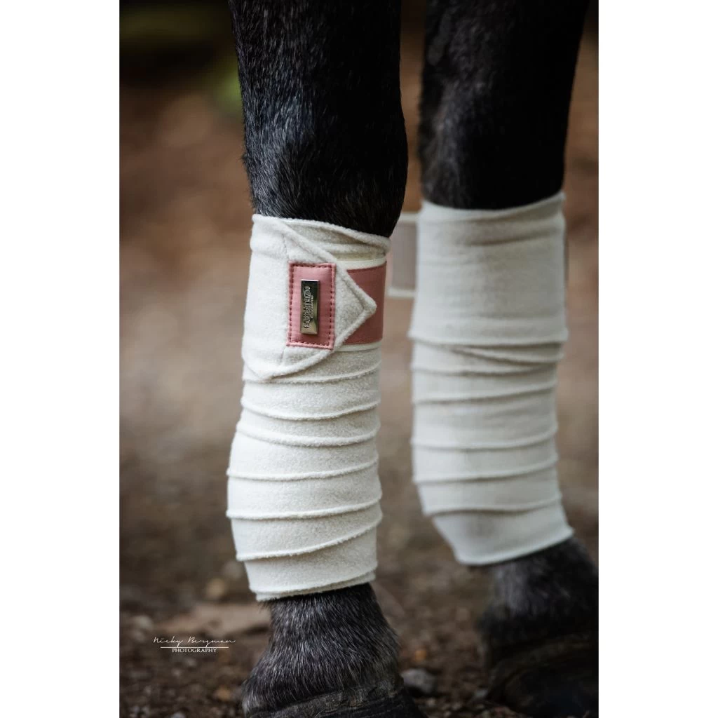 Exclusive fleece bandages in a beautiful beige design with silver and pink/beige details. Style with the saddle pad from our Desert Rose or Pink collection to complete the elegant look. The fleece bandages are decorated with a silver Equestrian Stockholm badge. Sold in sets of four.