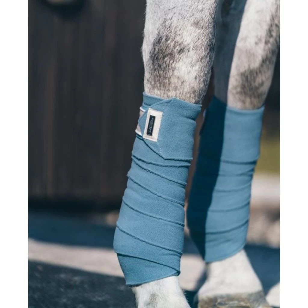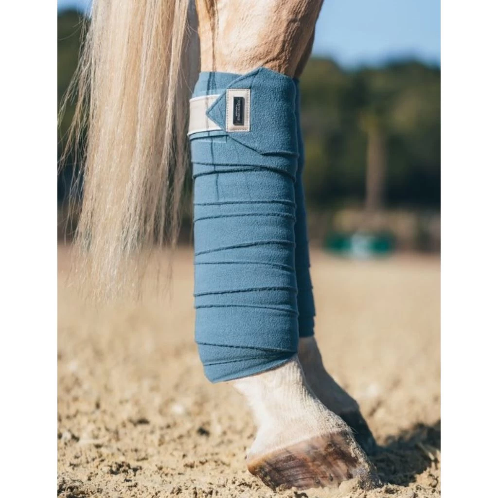 High quality fleece bandages in a stylish light blue color. Decorated with beige satin details and an Equestrian Stockholm badge in silver. Style with the saddle pad and ear net from the Stone Blue collection to complete the glamorous look. Sold in sets of four.
