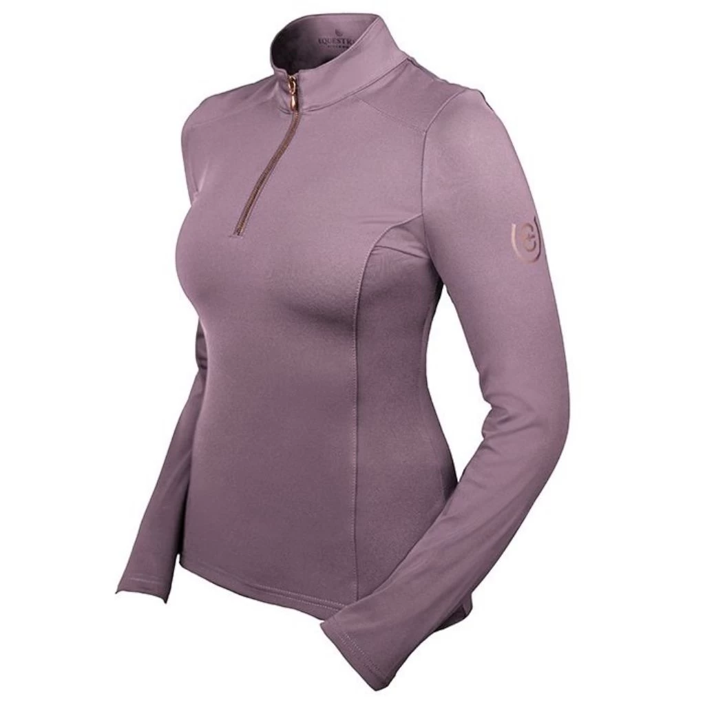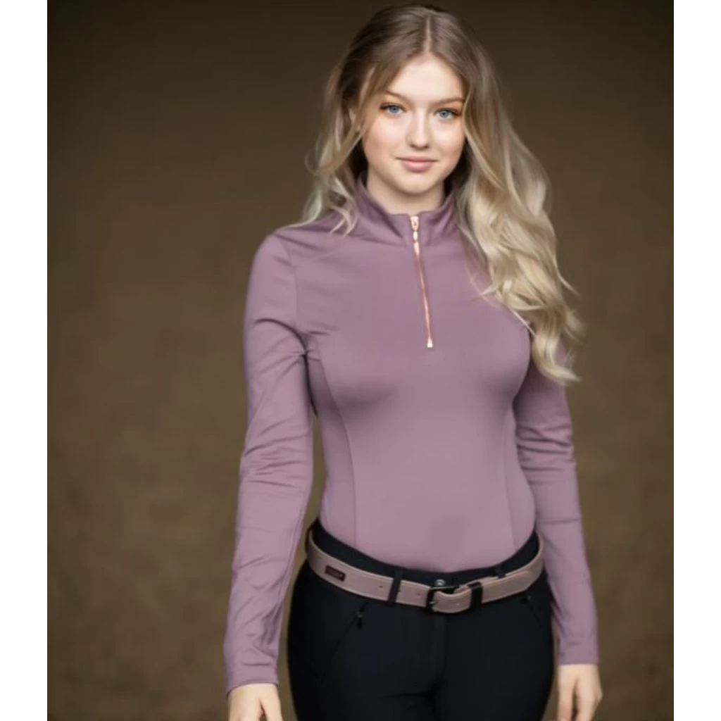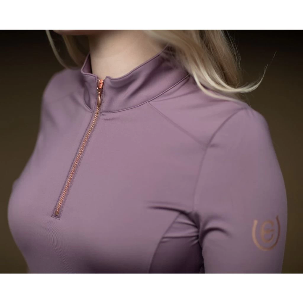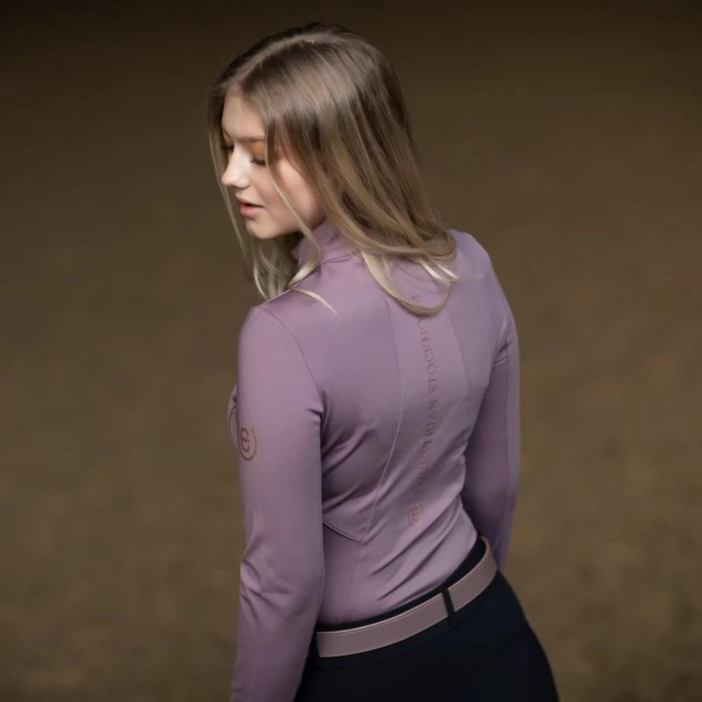Exclusive and sporty Vision top in a luxurious pink color with rose gold details. The top is crafted in a breathable, recycled polyester blend with a slim fit and mesh along the sides. Decorated with a vertical Equestrian Stockholm logo on the back and a smaller logo on the left arm. Wear it with other products from the Anemone collection for a complete look.