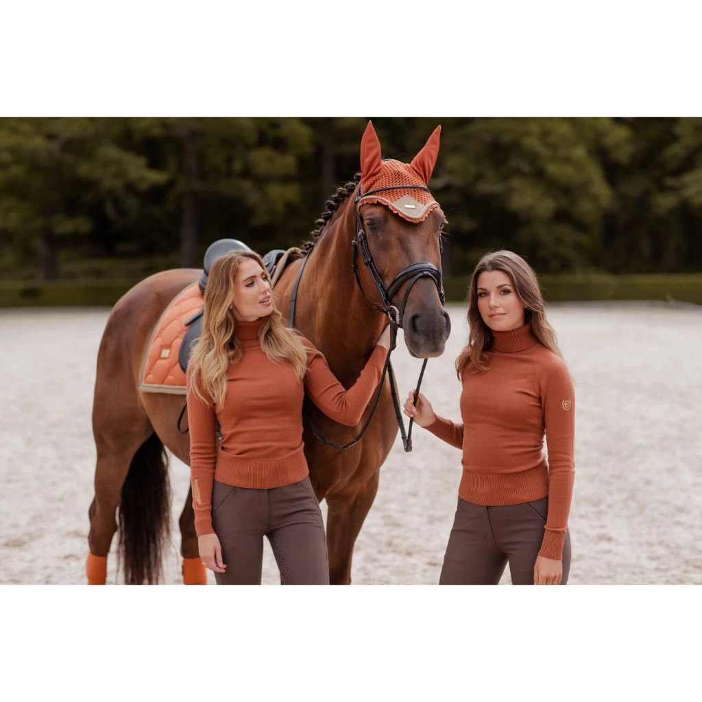 Stylish knitted polo top designed in a warm orange with golden details. Created in a loose fit, if you desire a slim fit we recommend to go down one size. Styled with two gold ES logos, one on the left sleeve and one of the right sleeve hemline. Available in sizes XXS-XXL.