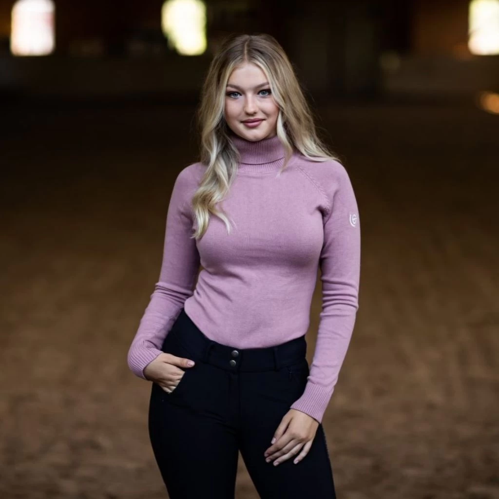 Stylish and warm knitted polo top designed in chic pink with white details. Created in a loose fit, if you desire a slim fit we recommend to go down one size. Detailed with two white ES logos, one on the left sleeve and one of the right sleeve hemline. Available in sizes XXS-XL