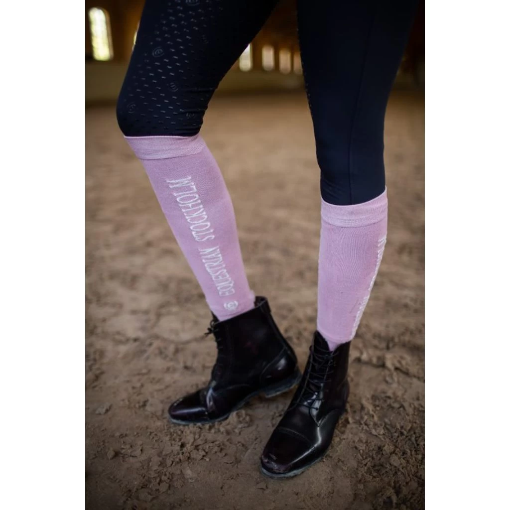 Soft and stylish riding socks in pink with Equestrian Stockholm logo in white. These stylish knee socks will keep your feet feeling comfortable and fresh in your riding boots as well in jodhpurs.