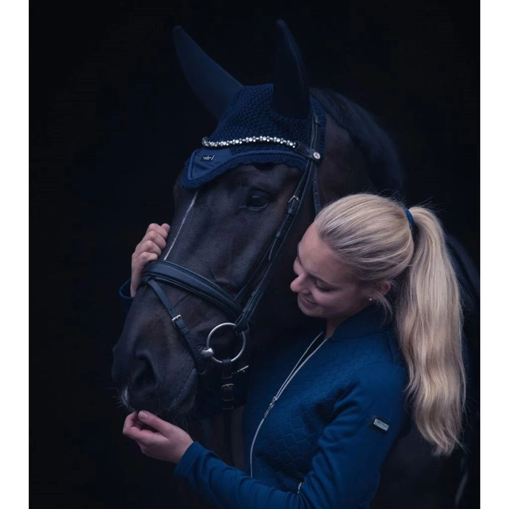 Luxurious ear net in a clean design with silver or gold metal badge.