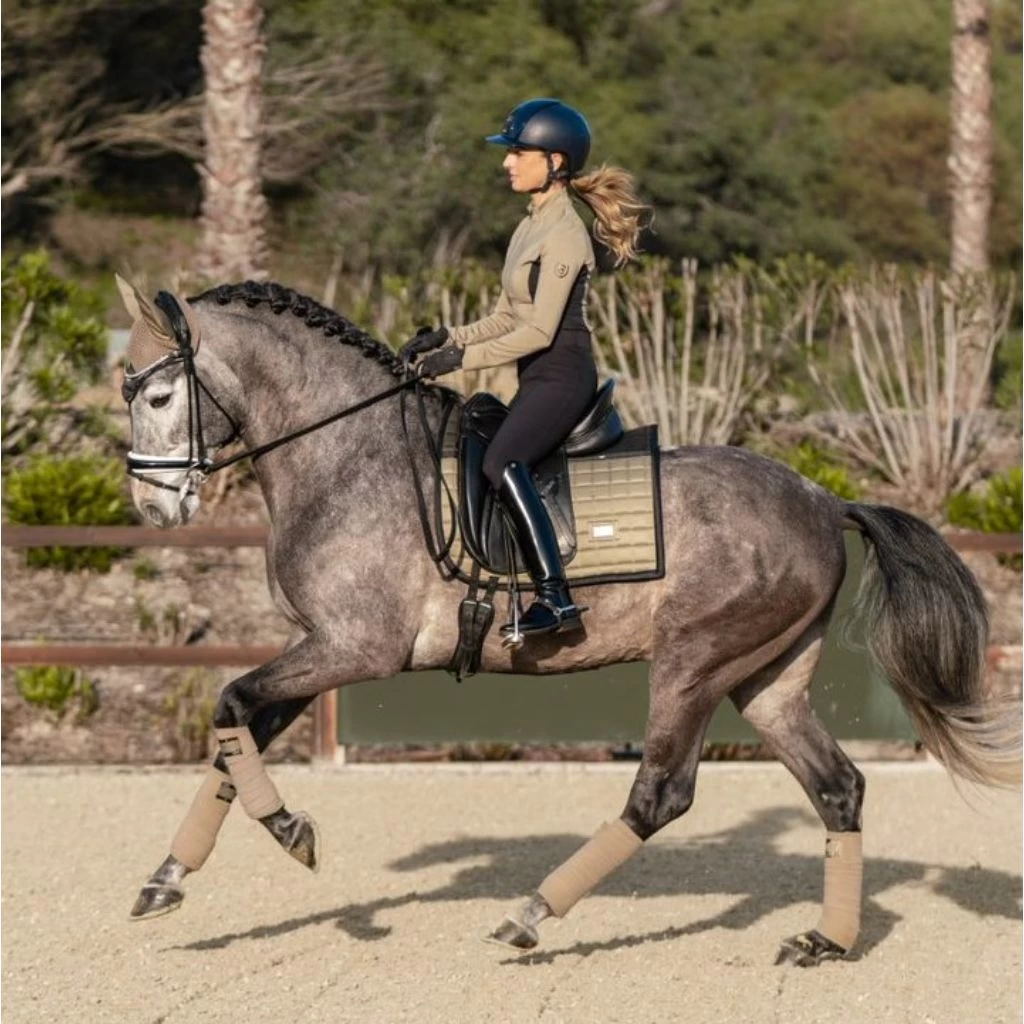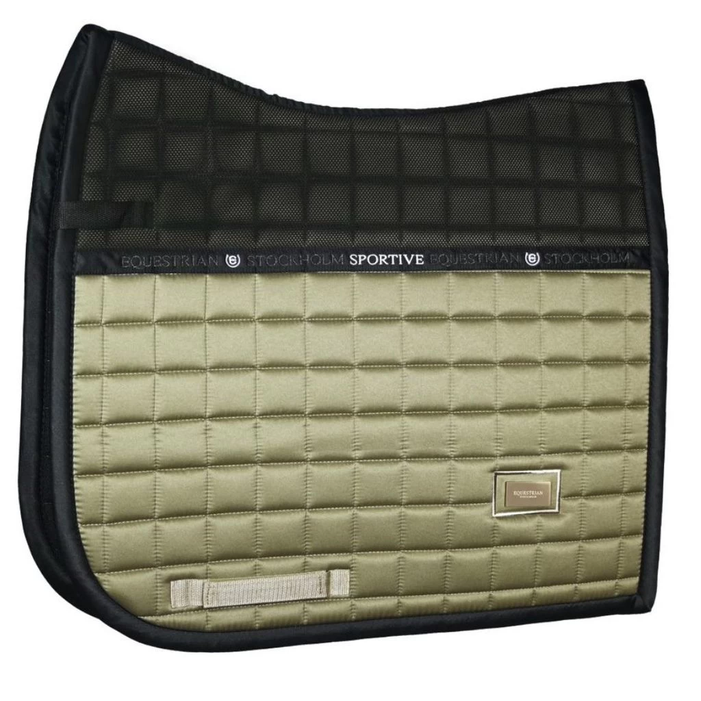Sportive saddle pad in a beige color with black details. Decorated with the Equestrian Stockholm badge in light gold. Style with other pieces from the same collection for a head-to-toe stylish look.