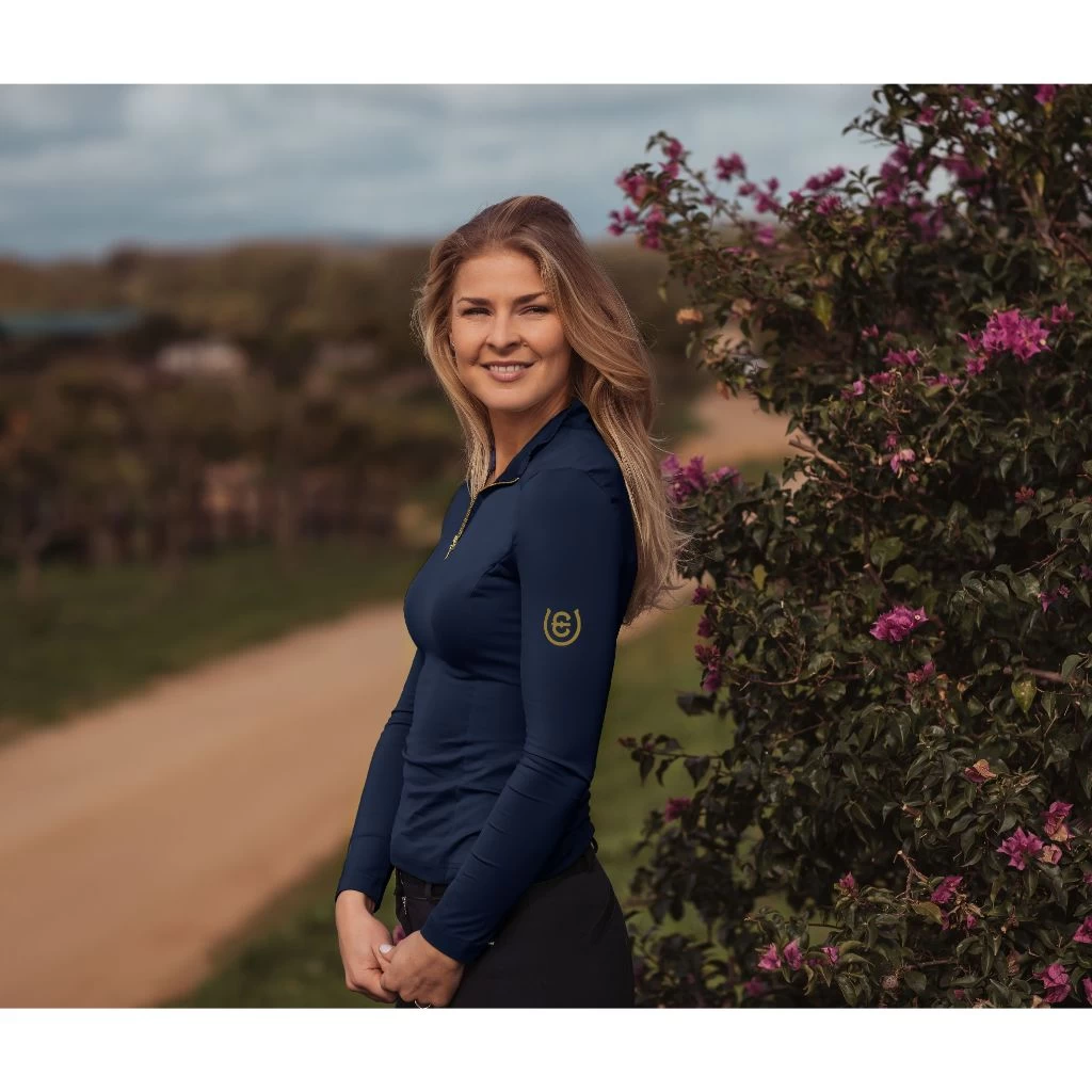 The ultimate riding top comes in an elegant grey design with silver details. Created with fast drying, eco-friendly material that breathes well and has a cooling effect. What’s special about the top is also that it has integrated UV protection factor 35. It protects you from the sun, and with its ice cool touch, it cools your skin temperature with 1-2ºC. A silver vertical Equestrian Stockholm logo is placed on the back and a smaller logo is placed on the left sleeve. The filling contains recycled coffee beans, which functions as an odor control. The odor control keeps your top fresh longer, which means fewer washes. Better for the top, better for the planet.