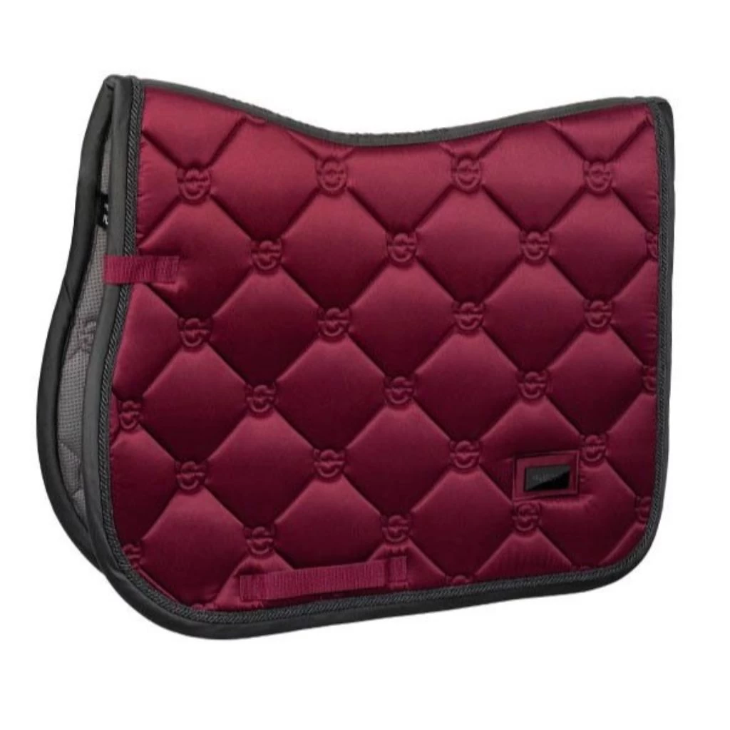 Elegant saddle pad in a deep red colour with black and dark grey details. Decorated with the Equestrian Stockholm badge in chrome. The bamboo material is perfect all year round due to its thermal regulating effect – cooling in the Summer and warming in the Winter. It is also quick dry, moisture wicking, and anti-bacterial. Style with other pieces from the Dark Bordeaux collection or our classic Bordeaux collection for a head-to-toe stylish look.