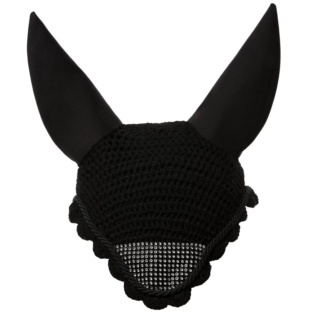 100% polyester fly mask decorated with a wide band of silver sparkles on the yoke. Stretch knit ears.