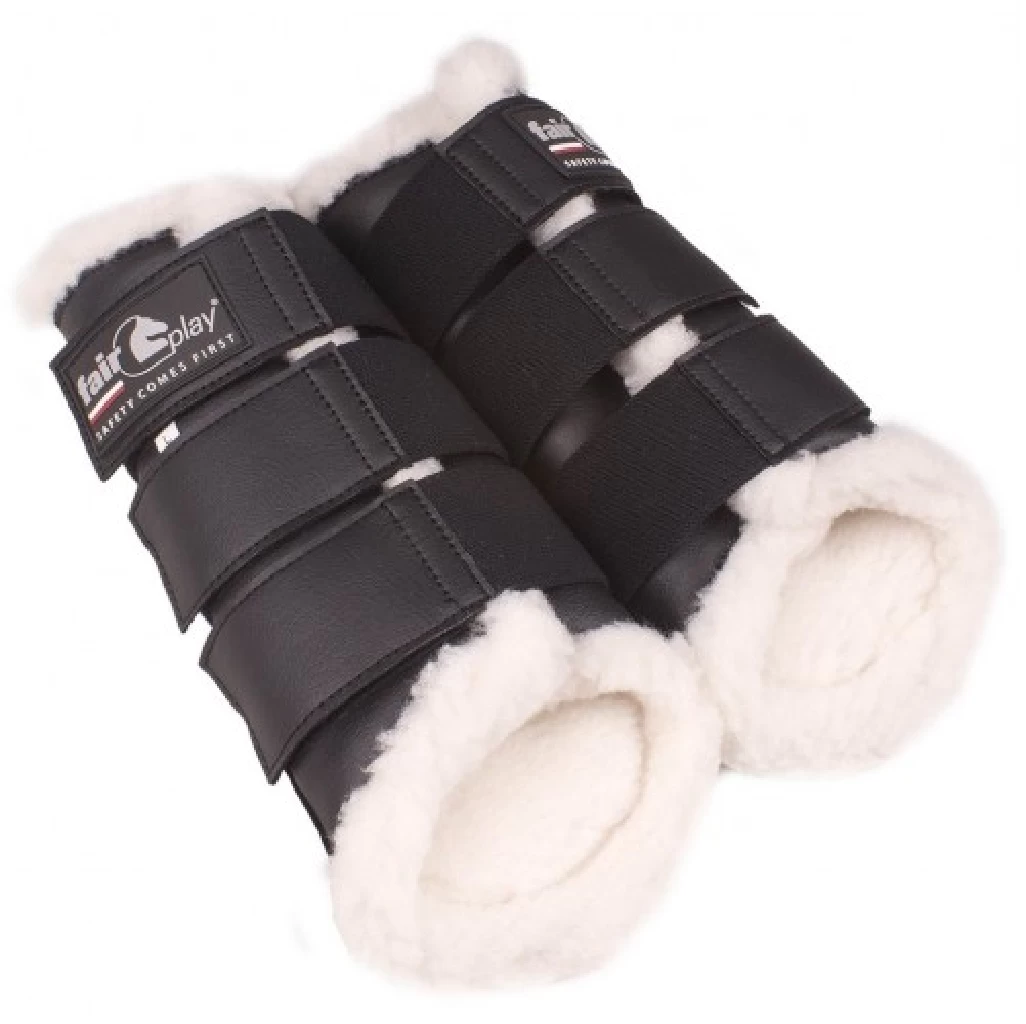 Comfortable, durable, washable dressage boots lined with synthetic fleece. Ideal for training as they offer support while allowing complete freedom of movement. The synthetic fleece absorbs shock and the impact and is very delicate on the horses’ skin. Depending on the size, they have 2 or 3 strong velcro straps, which perfectly stabilize the protection boots. The elastic tabs prevent overtightening Available in black or white .