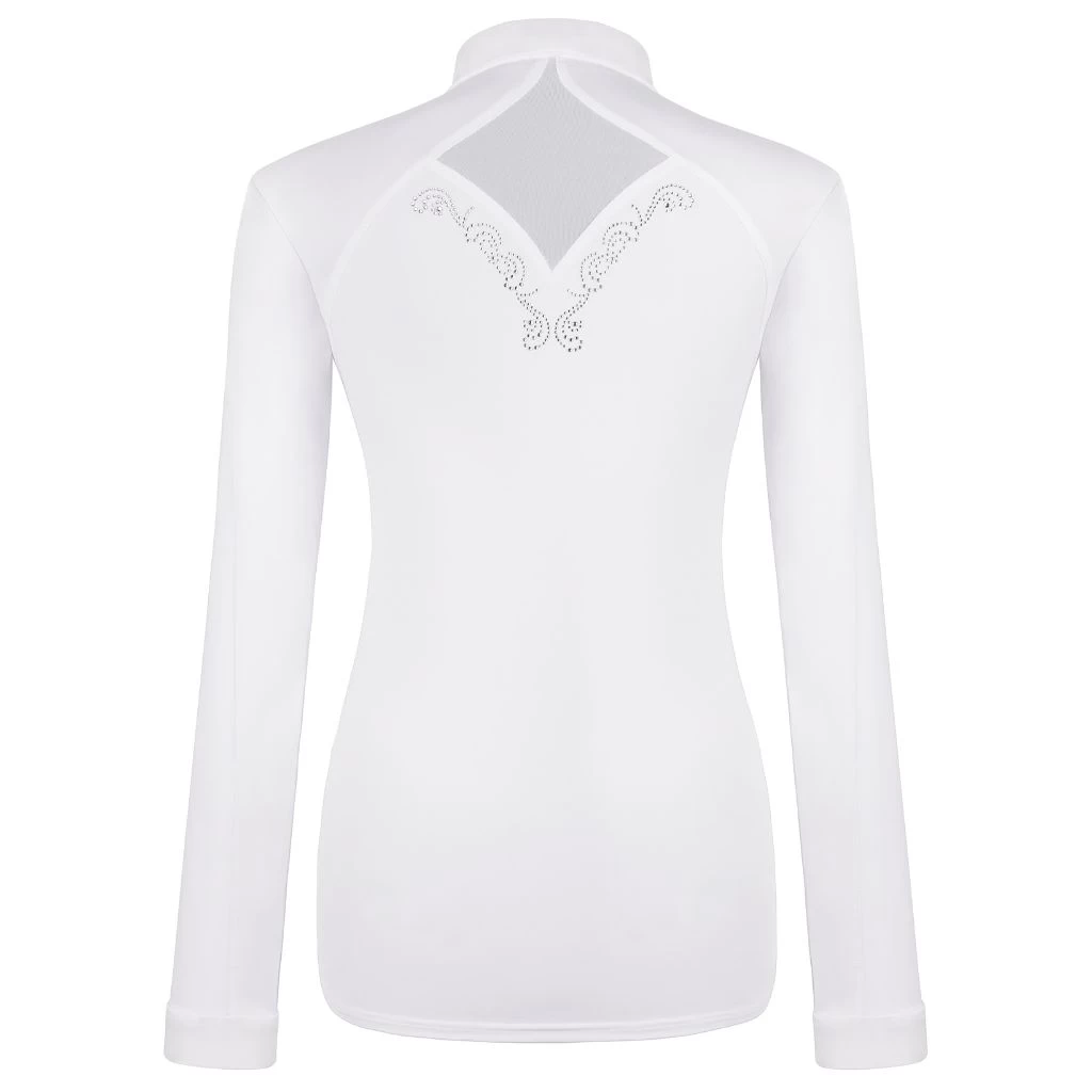 New FairPlay Cathrine competition shirt in White. This elegant show shirt is exceptionally femenine and creates presence with or without a jacket over top.