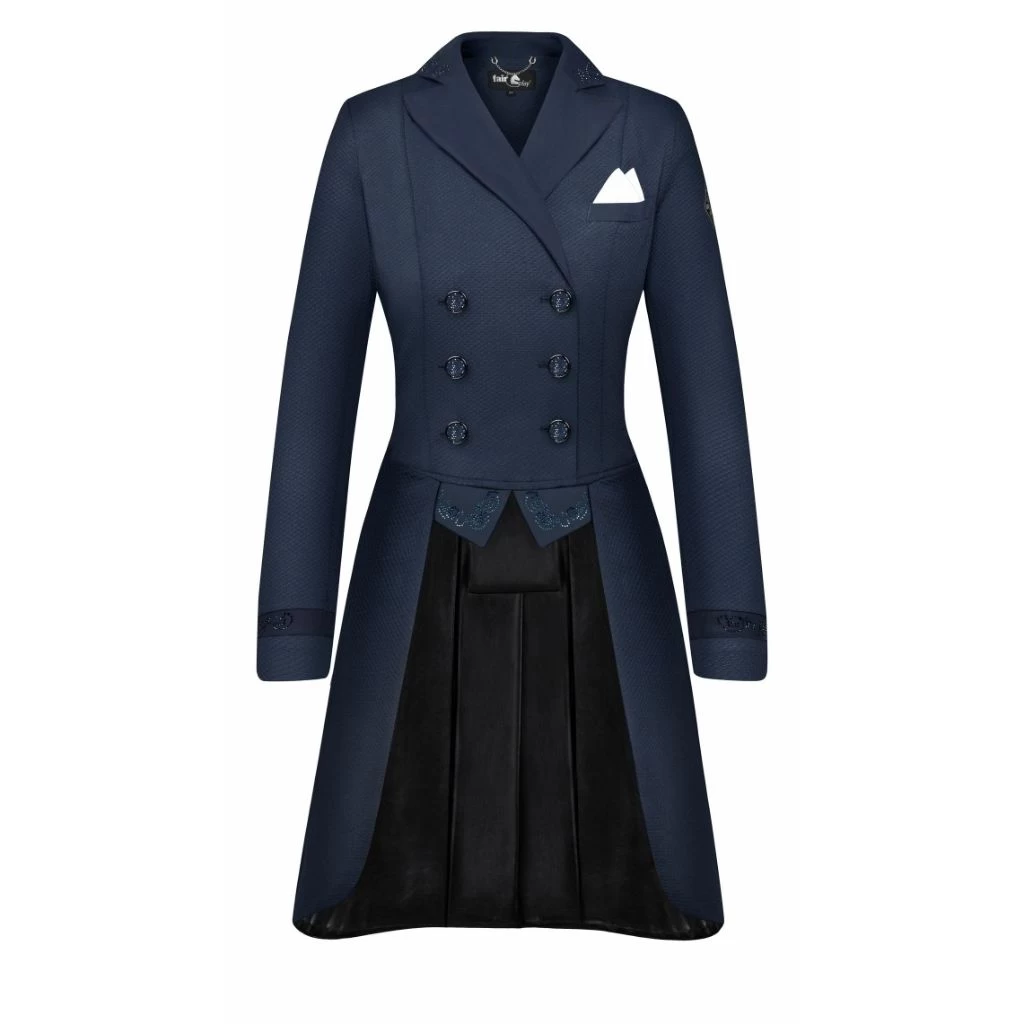 The most beautiful jacket, Dorothee Chic in Comfimesh. Very elegant dressage tailcoat with tasteful fine crystals on the collar and at the back. Stunning to look at with its tailored fit this jacket will keep you looking professional and elegant. This tail coat is a great option for those living in warmer climates who need extra brethability, or if you love a cooler option.