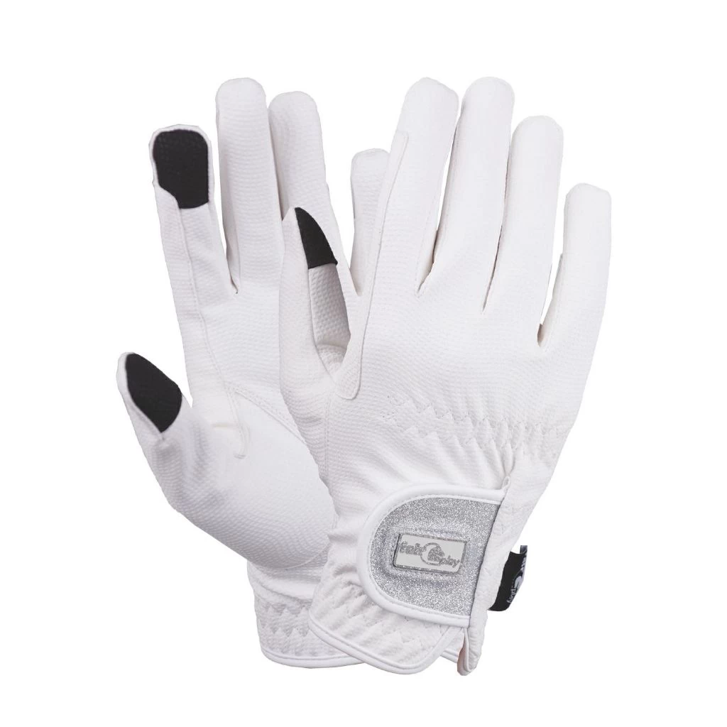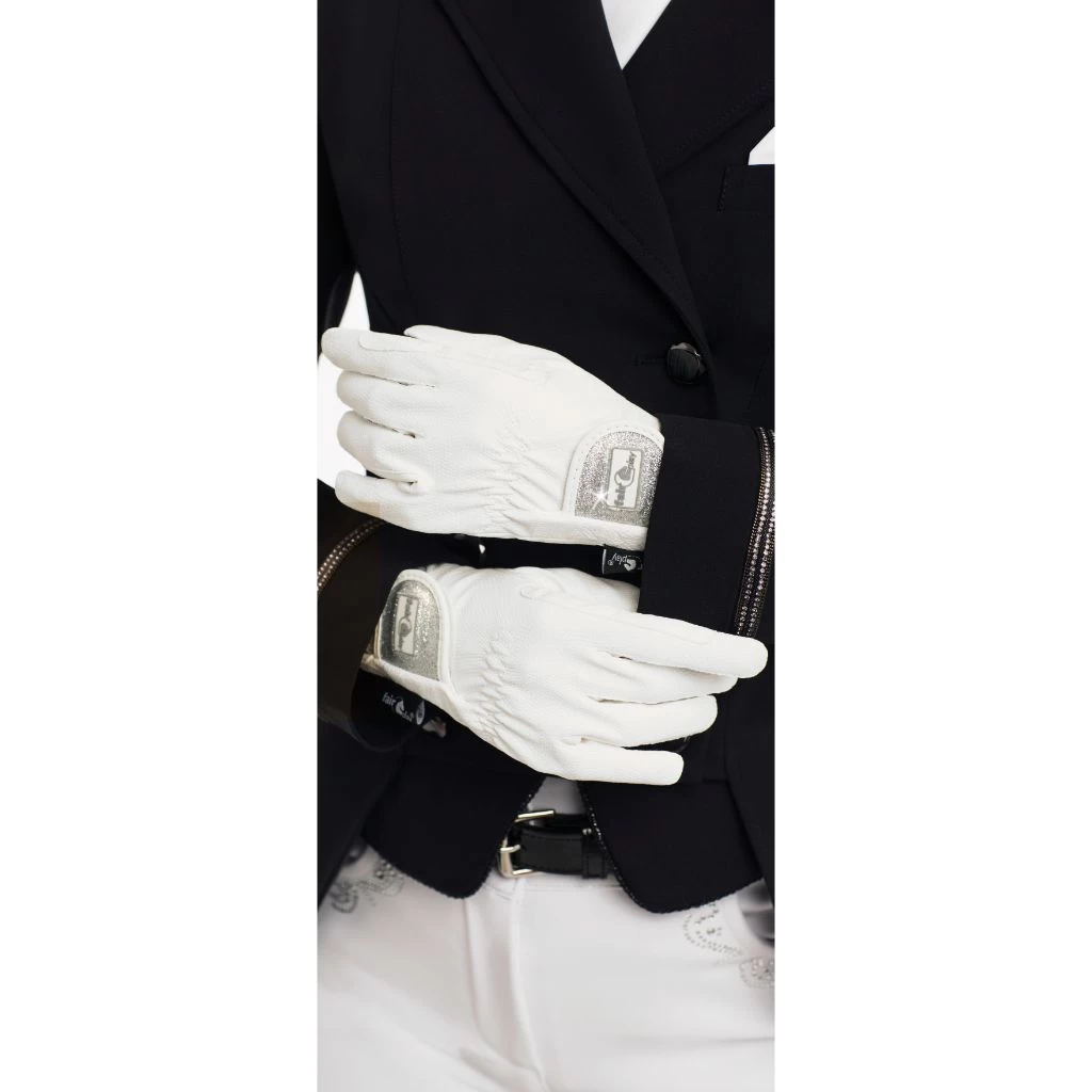 Made of thin, synthetic leather with glamorous sparkle panel at the wrist.Â