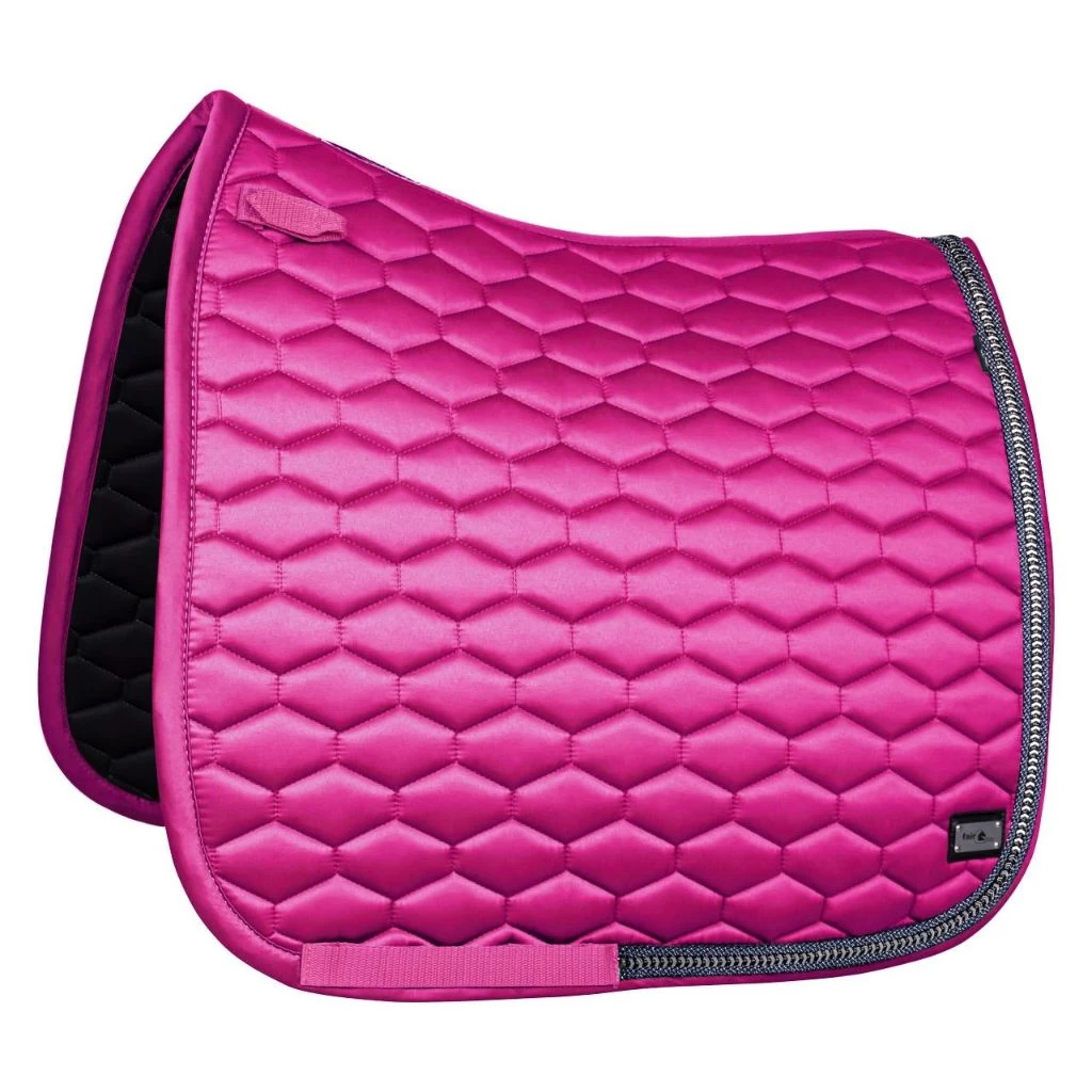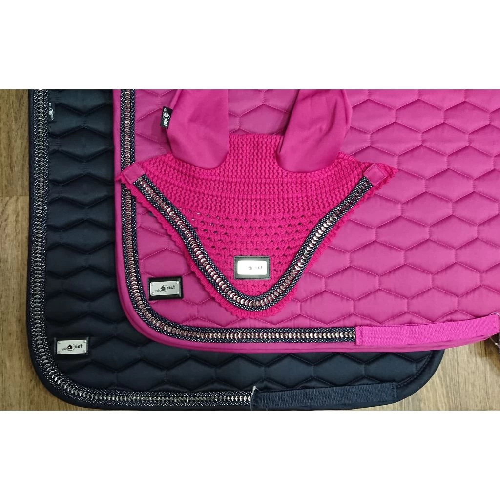 Luxury satin saddle pad with a stunning design. Embellished with a row of onyx coloured, arrow shaped chain between two rows of sparkle braid.