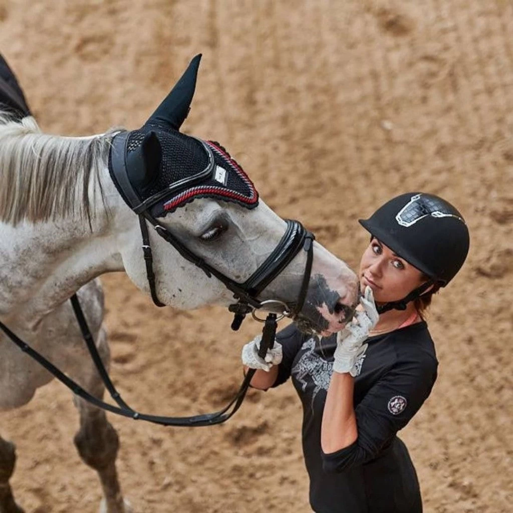 A gorgeous fairplay bonnet with double cords to match the ‘hexagon’ double cord saddle pad.