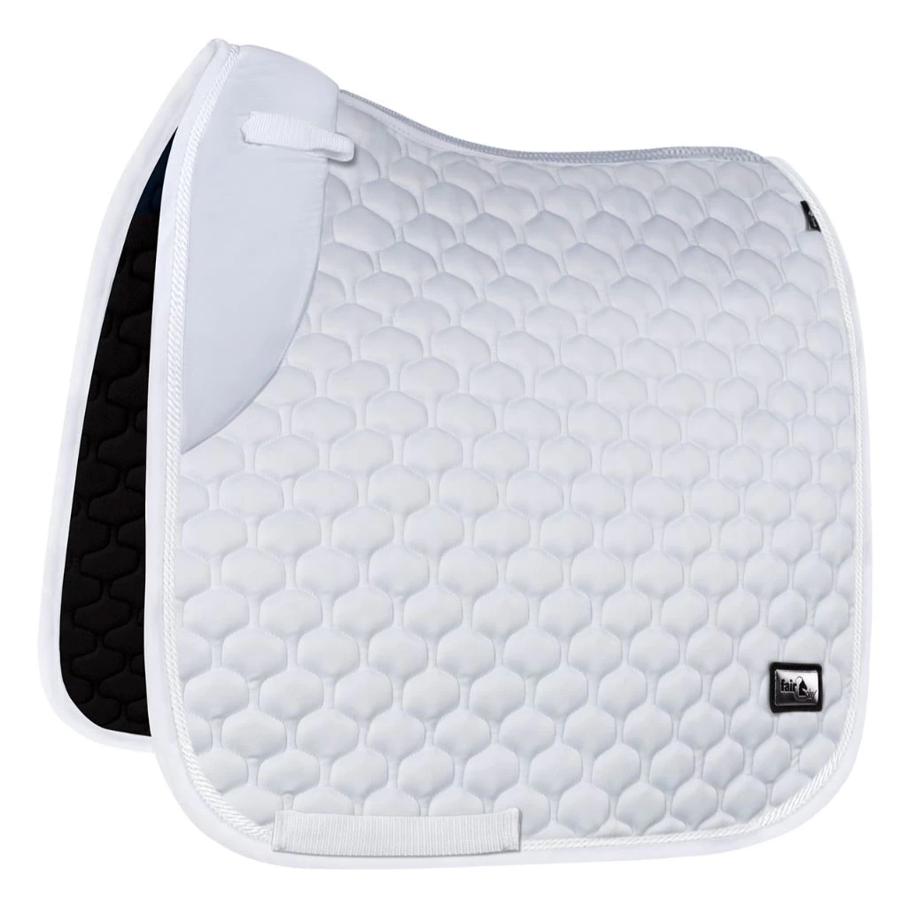 Highest quality dressage saddle pads from FairPlay. Features a beautiful cut with quick drying fabric to ensure your horse doesn’t sweat exessively, padded wither area for comfort and an anotomical shape to fit the horses back perfectly!