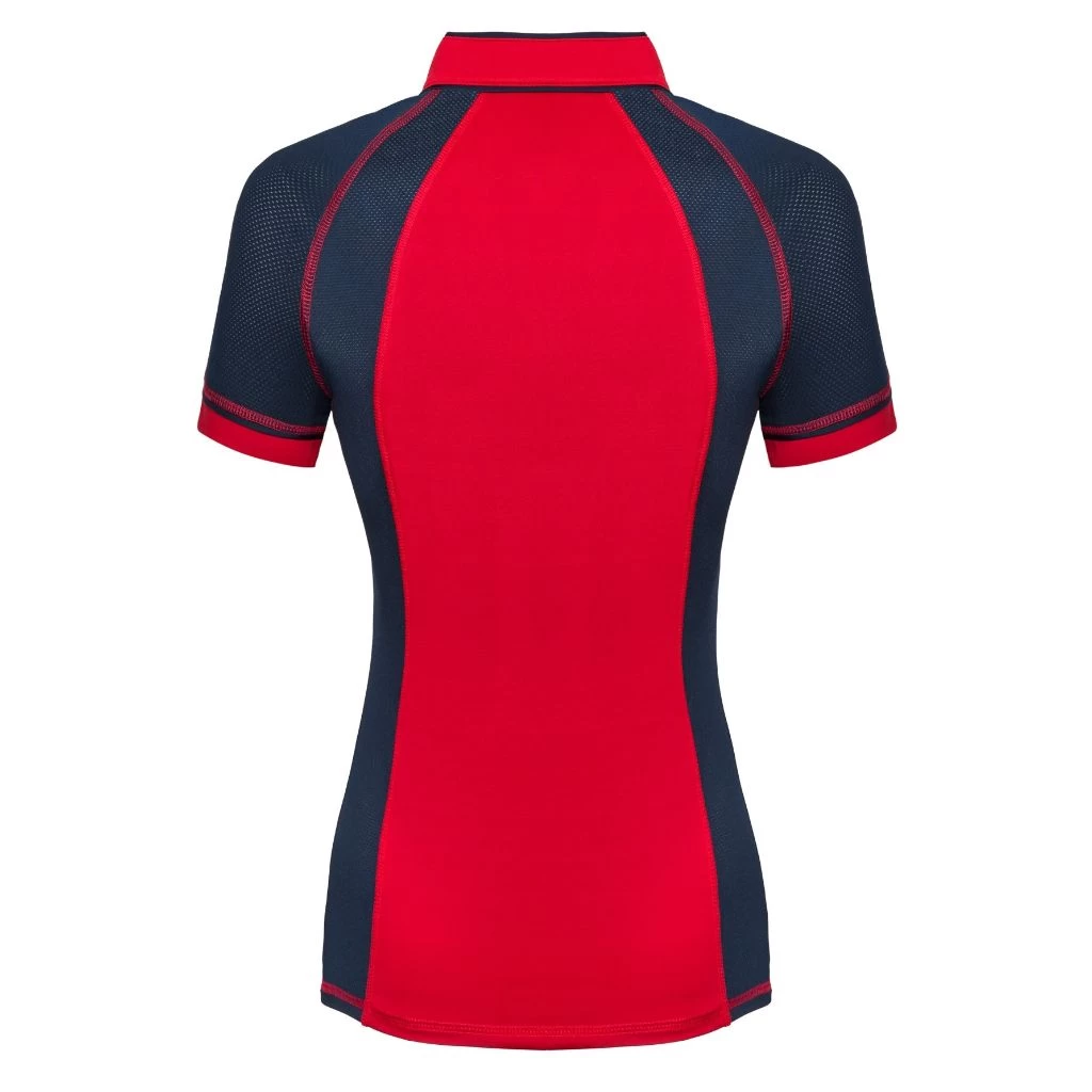 A functional short sleeve training or competition shirt perfect for any navy and red lover! The Jovita shirt is made from brethable, elastic fabric making it comfitable and stretchy to wear on warmer days. A taylored fit makes this top perfect for competition as well as the zipped stand up collar.