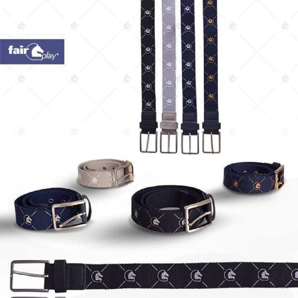 Sackcloth belt with FairPlay logo pattern. Width 3,5 cm.