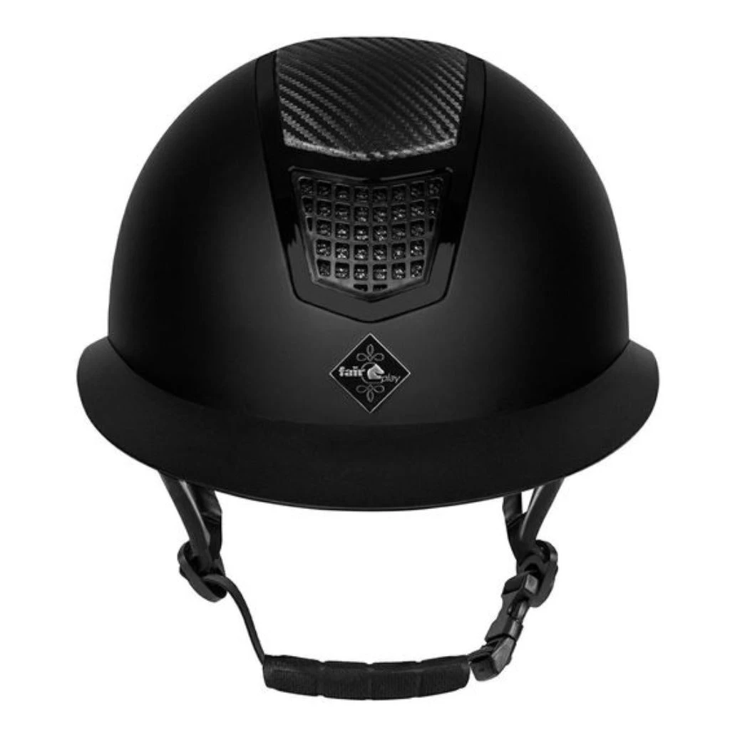The Fair Play Quantinum Carbon Wide Peak Riding Hat is super smart and stylish. Featuring a striped carbon fibre-look centre panel with metallic black edging, this elegant riding hat looks professional but remains eye-catching. The removable and washable liner helps to keep your riding helmet feeling fresh, helped by front and rear ventilation panels to keep your head cool. This adjustable riding hat has a size dial at the back for a precise fit, an adaptable three-point harness, and a memory foam.