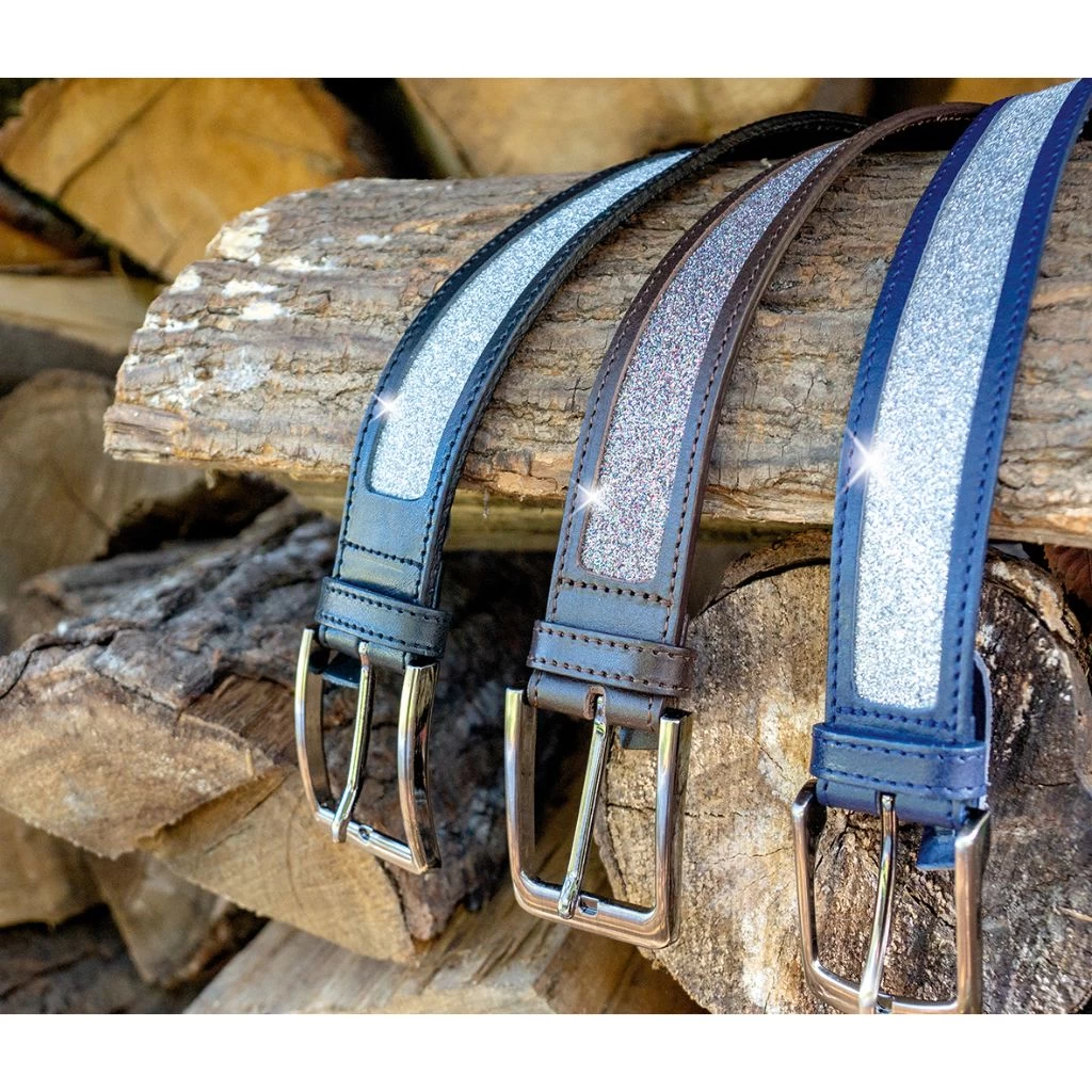 Unique and elegant belt in soft, pliable leather with super sparkly, durable glitter tape.