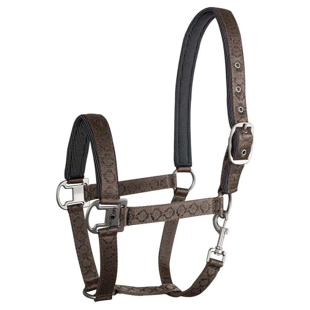 Very elegant and light halter made of printed durable PP webbing with a horse bit motif
