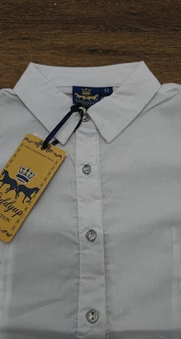 Perfect pretty show shirt with shirt collar, puffed sleeves and crystal buttons.