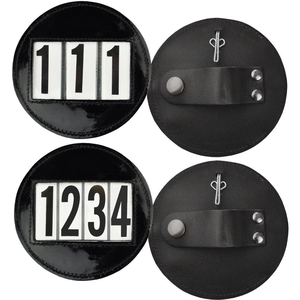 Hamag Leather Number Holders™ are available with either 3 or 4 digit plastic number inserts and come complete with a pair of number inserts, in either 3 or 4 digit number set. number card that can be swapped out for your included interchangeable number set.