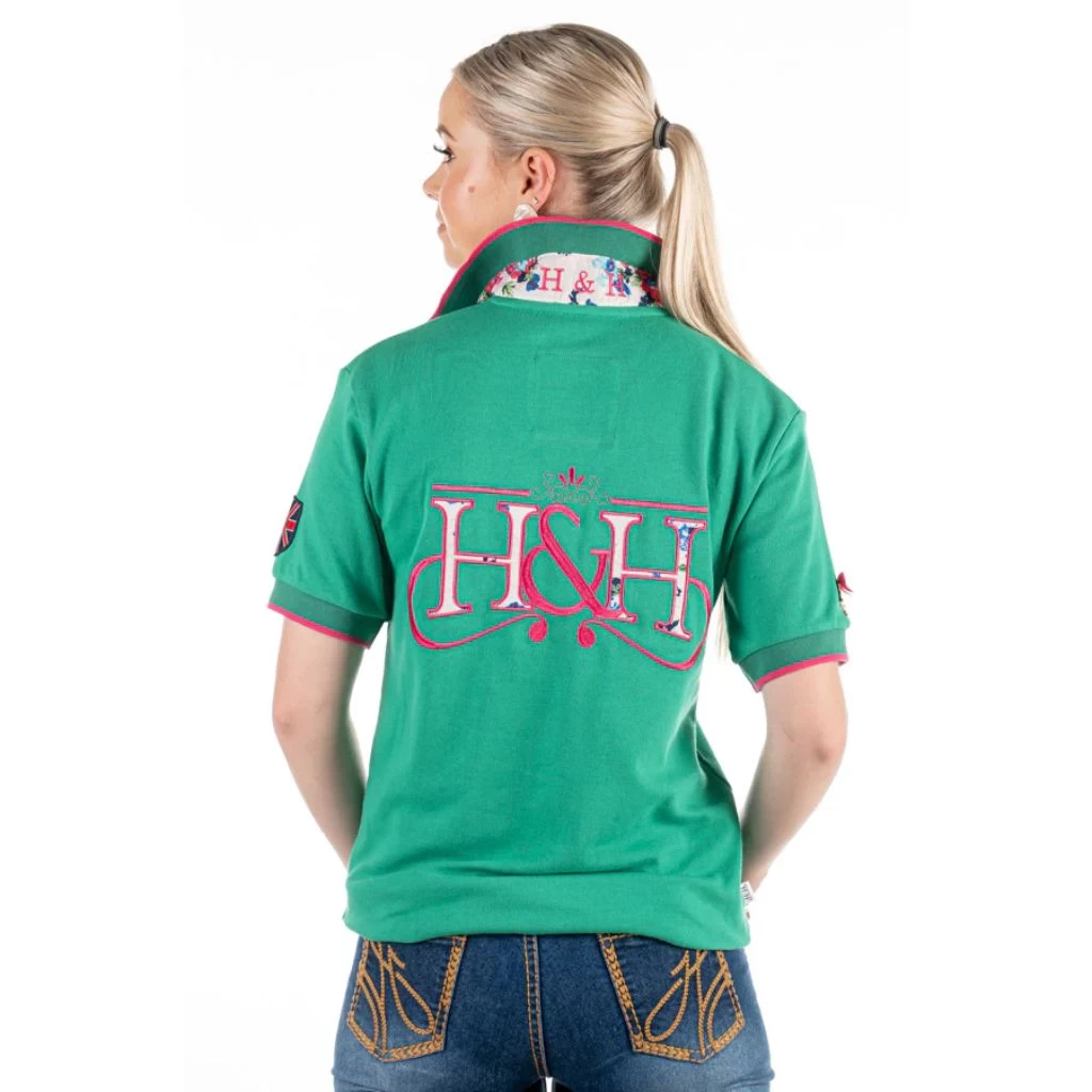 Another super comfortable all year round option from H&H, this new release, loose fitting polo is offered in emerald with pink, navy and emerald floral fabric trims.