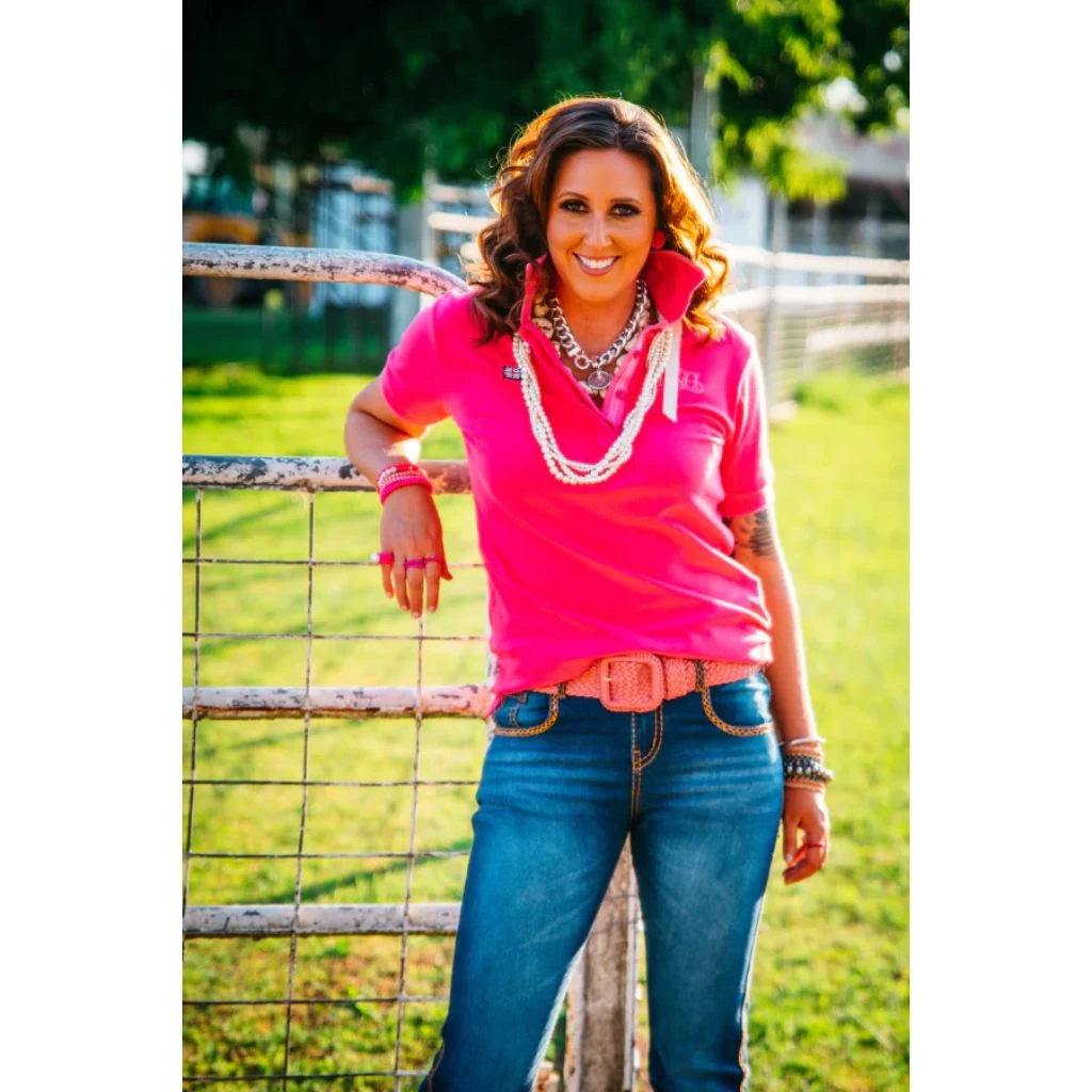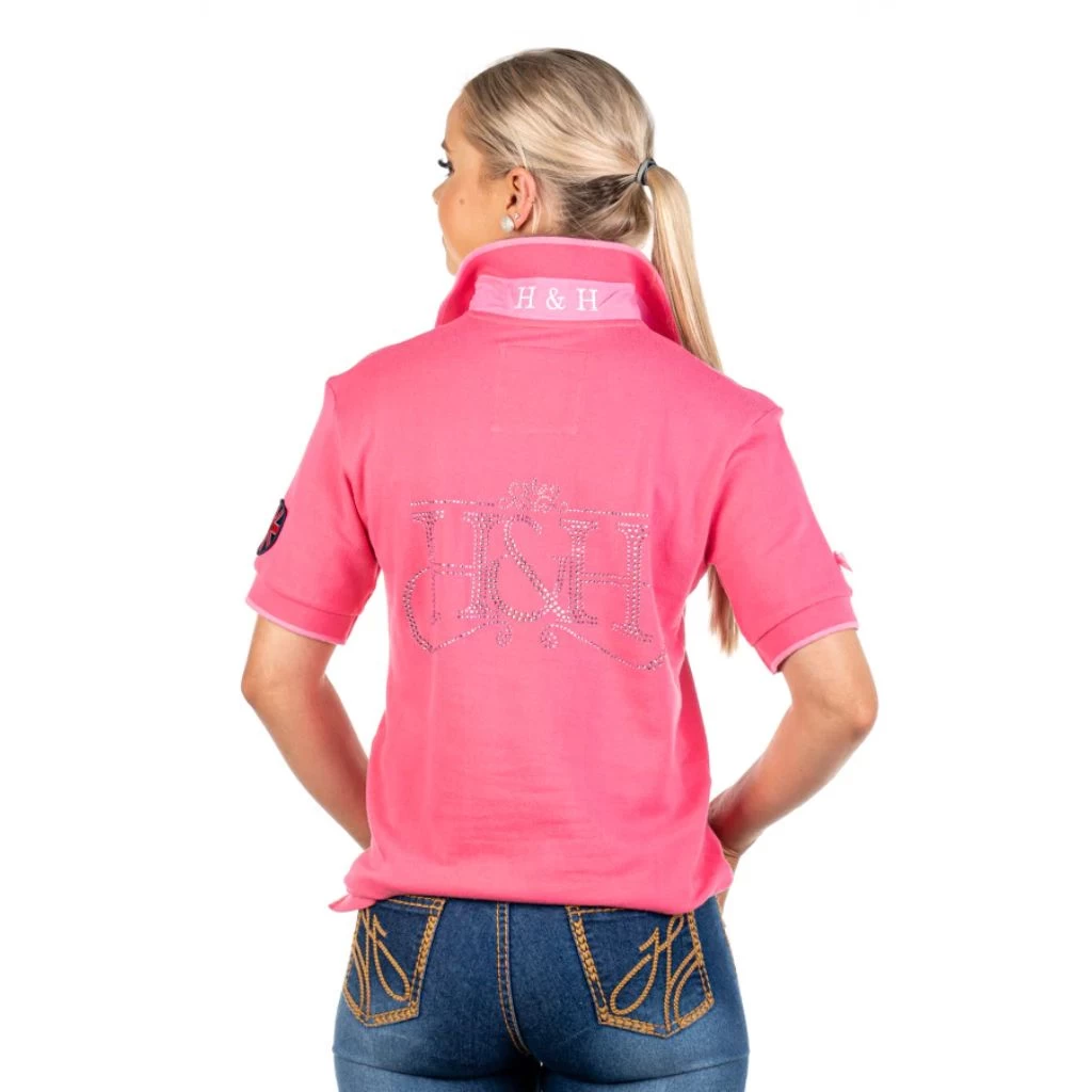 The back design features a stunning, custom designed, pink diamonte H&H logo. Custom woven collar, cuffs and embellishments. Cut on a straight side seam, the EL polo range offers more generous patterning for ultimate comfort.