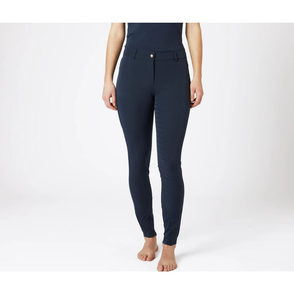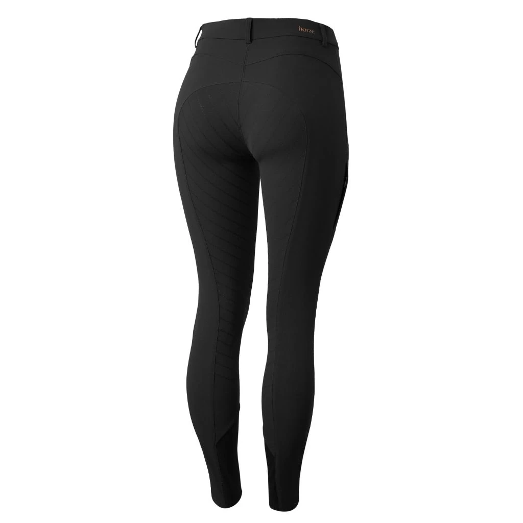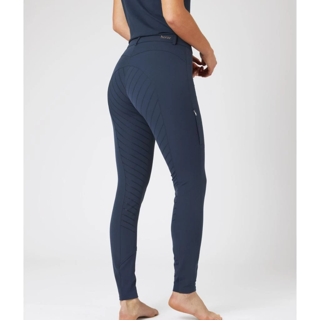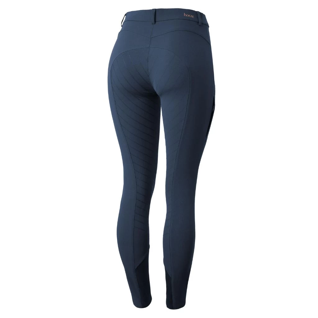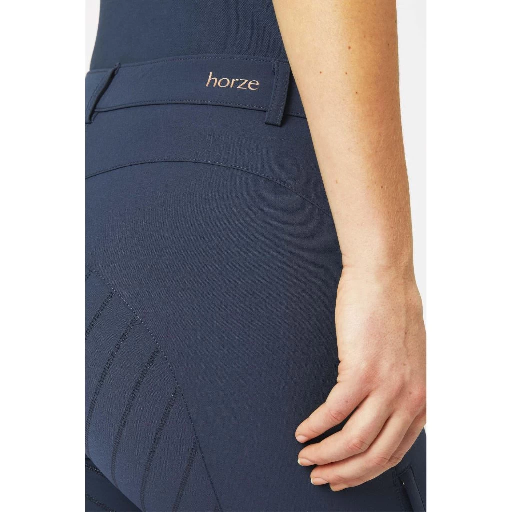 Our Horze Anna breeches are not only pretty, but also practical. The zipper pocket on the thigh offers space for your phone. The full seat is made from silicone to keep you safely in the saddle. The back side is decorated with flattering seams for a pretty shape. Small rose gold details add a nice touch.