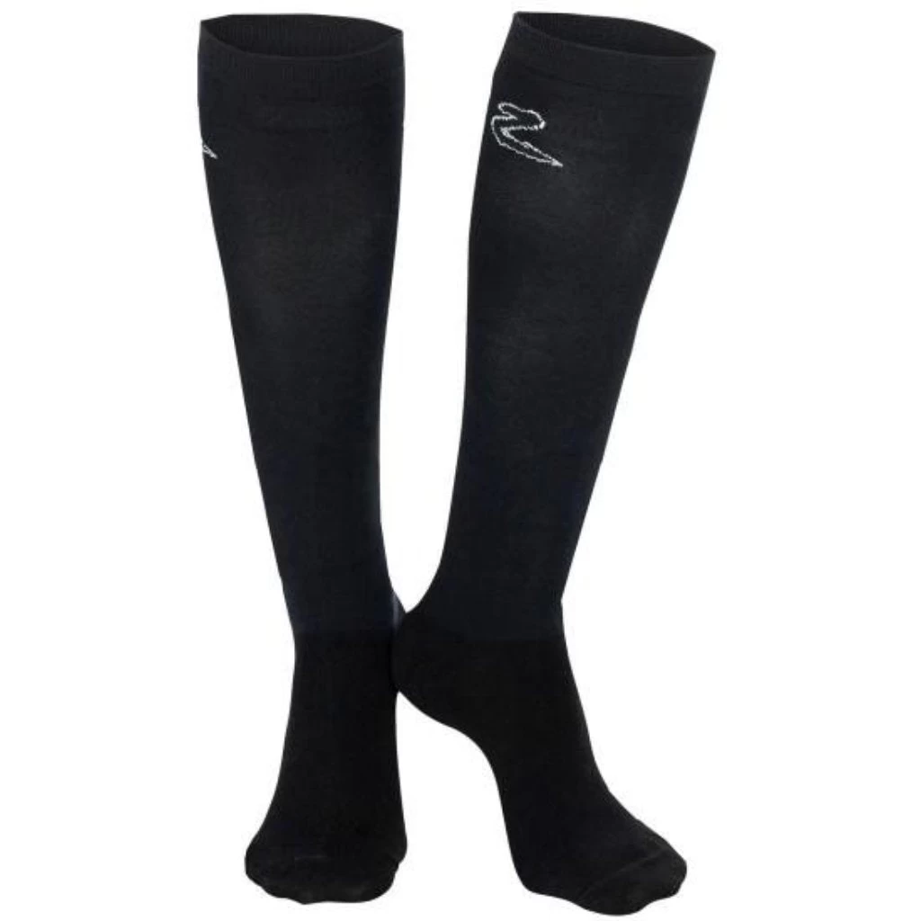 Technical competition socks; breathable with comfortable bamboo, fibre/cotton mix on the soles, and a thin, elastic nylon shaft that fits nicely into tight competition boots.