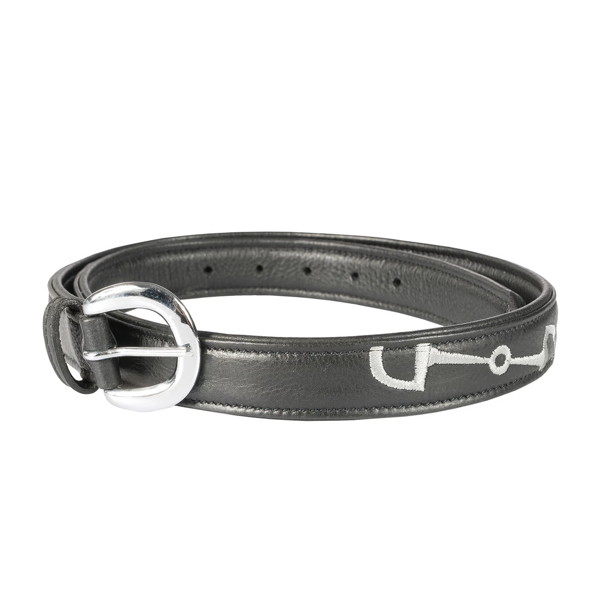 Very soft padded leather belt with elegant bit embroidery detail in silvery-coloured thread.