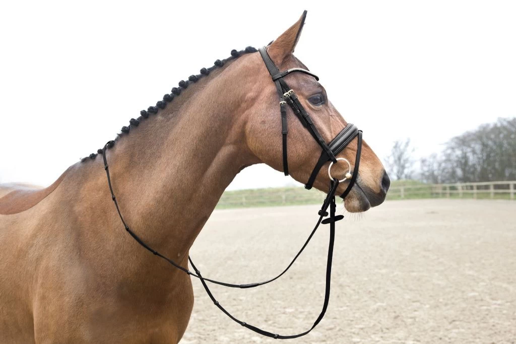 The careful craftsmanship of this sophisticated Horze Lester Snaffle Bridle is evident in the lovely attention to detail, including the ergonomically-shaped crown. These fine details will accentuate your horse’s head. The U-shaped brow band is adorned in stunning crystals and a delicate piping adds subtle decoration to the noseband with detachable flash. The anti-slip reins intertwined with rubber provide a secure grip for the serious rider.