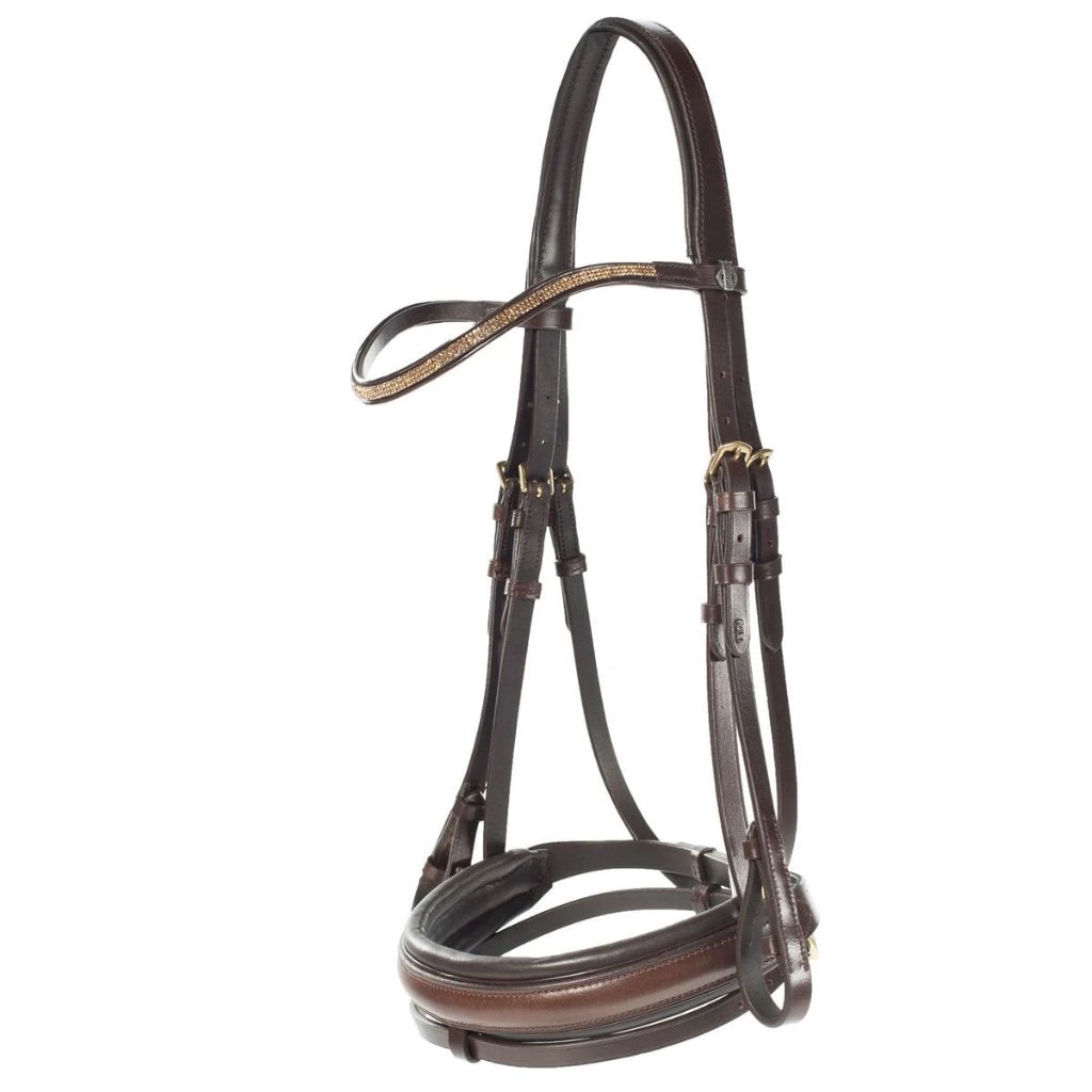 - Brown bridle includes topaz-colored crystals