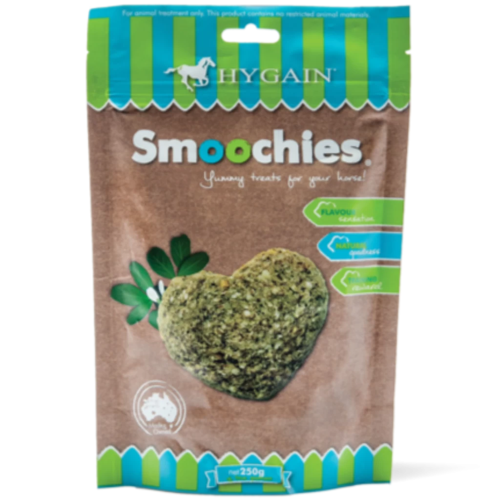 Fussy eaters, old-timers and sporting athletes from all over the country helped us to refine Smoochies to make your horse’s taste-buds party. The result is a crunchy baked heart-shaped horse treat biscuit, made from the freshest wholesome Aussie produce with the full flavour sensation of Fenugreek, ideal as a reward or just simply as a gesture of love.