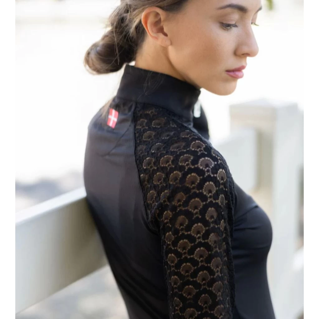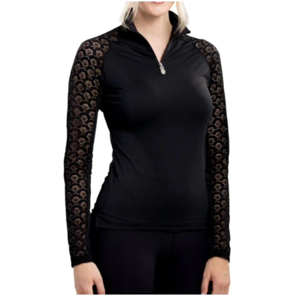 A contemporary lace raglan sleeve that is soft to the touch with added stretch. This will become a staple. Soft 4-way stretch fabric. It is fitted, flattering, worn out, or tucked in.