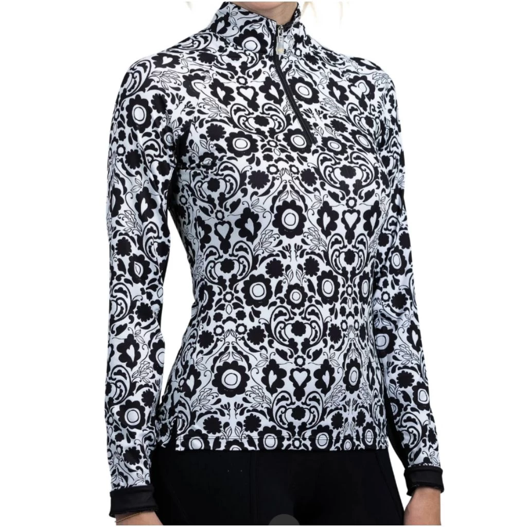Our signature whimsical floral print in a classic black-and-white color scheme is a perfectly versatile piece for all your athletic endeavors. Featuring a ¼ zip, long sleeves with mesh underarm panels, UPF 30 protection, and soft 4-way stretch fabric in a modern fit. Available in extended sizes.
