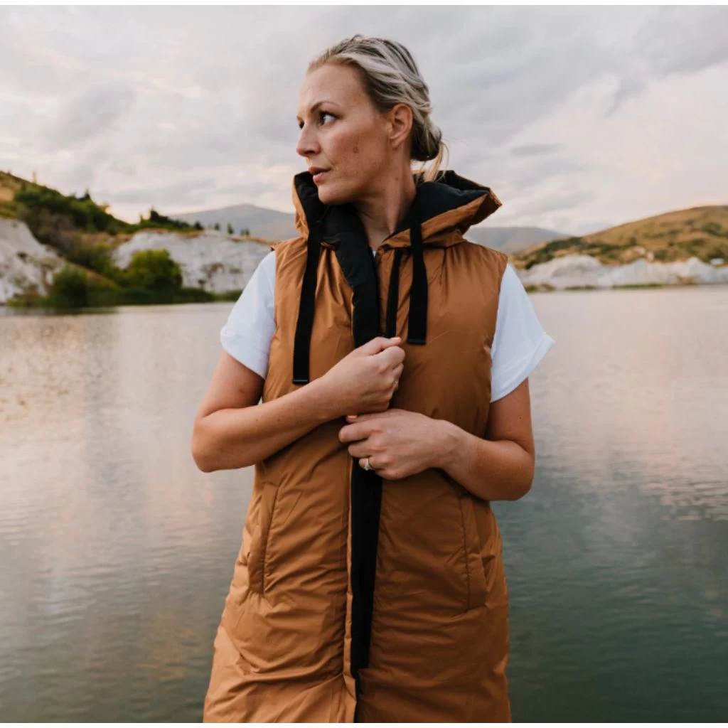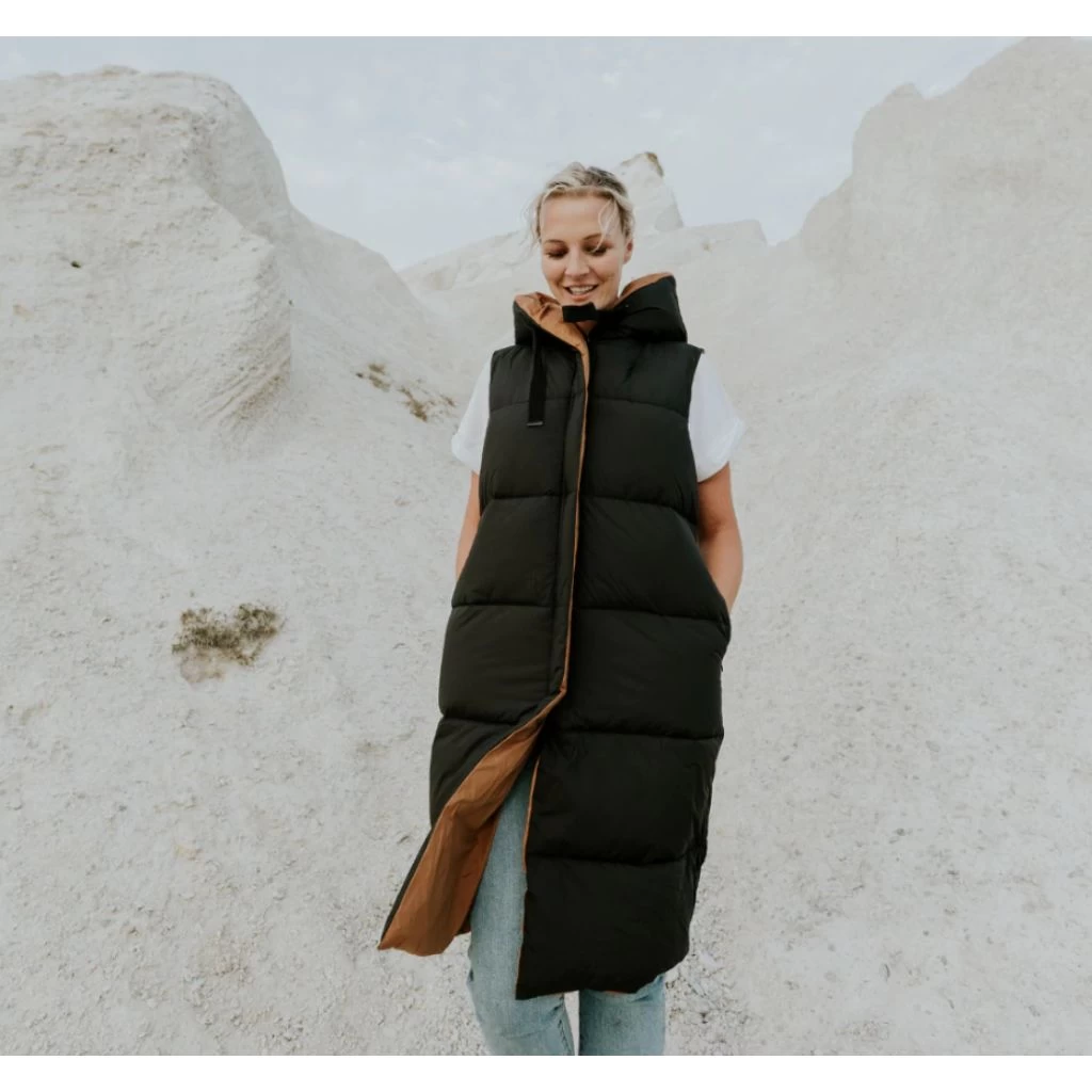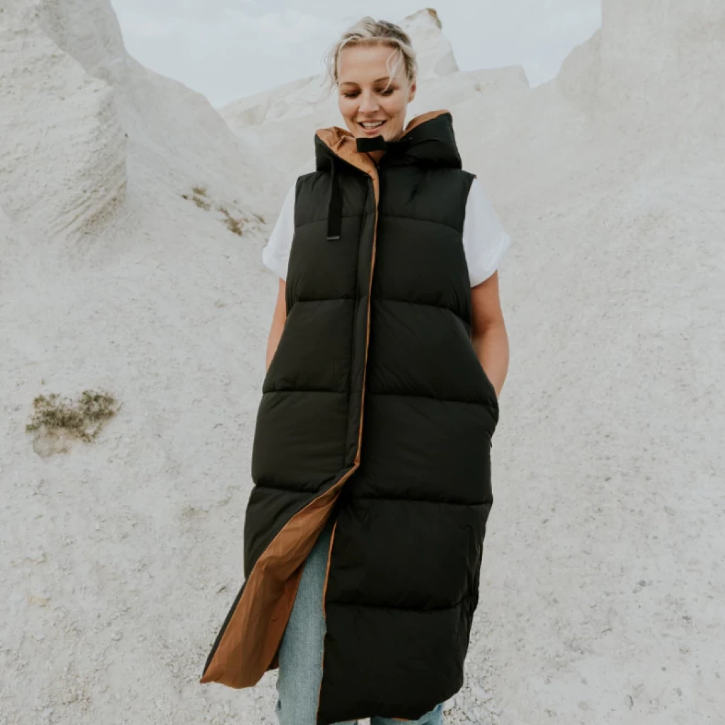 I’m the winter layer that will keep you snuggly and warm on the coldest winter days, perfect for those mornings on the sports sidelines or school drop off. My oversized hood will keep your neck toasty warm. I’m fully reversible so you can match me with anything- the perfect winter investment! You can wear me with a clear conscience, my shell is made from recycled materials and my fill is high performing Sorona insulation, https://sorona.com/ .