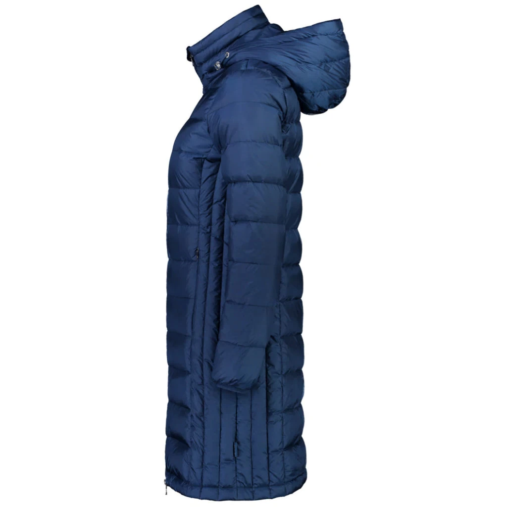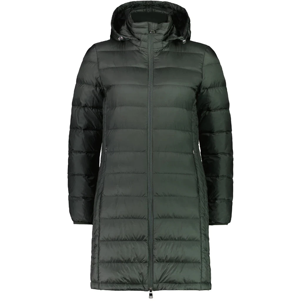 It can be worn on its own or underneath another jacket as an extra insulator for the coldest conditions. The vertical quilt design down each side flatters all shapes and sizes and the shiny hardware and luxurious fabric dresses up any outfit.Â
