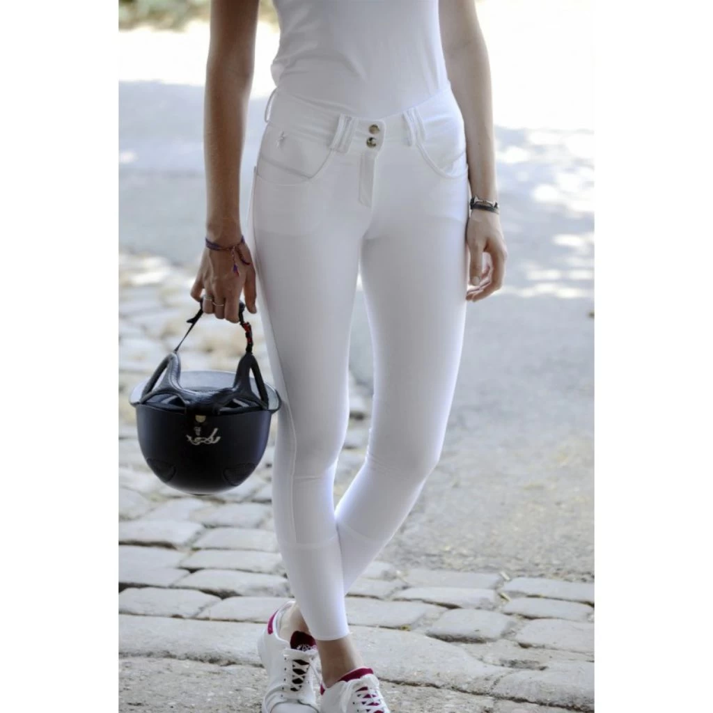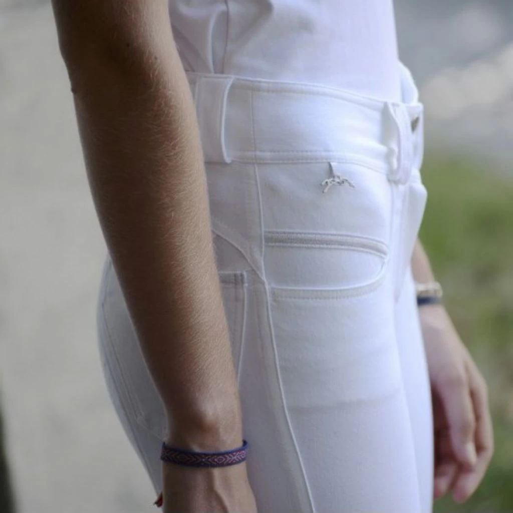 You can’t miss our Fun breeches, which became one of the emblematic breeches of Collections Pénélope. And for this season, it comes in a brand new color, Peacock blue! A soft, original and elegant color, matching so many different colors! A new color, yes, but by keeping this amazing fit : A midwaist cut, a stretch fabric so comfy to be worn as a second skin, a super feminine push up effect and still the silver piping bringing to light the wide pockets on the front (yes your phone will fit in it!).
