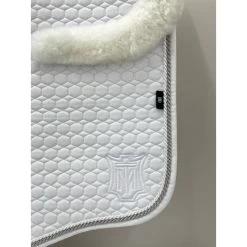 Mattes Dressage Saddle Pad White With Sheepskin Trim And White/Silver Piping FULL