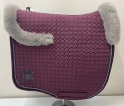 Mattes Jump Saddle Pad Navy With Burgundy Fleece And Burgundy And Silver Piping
